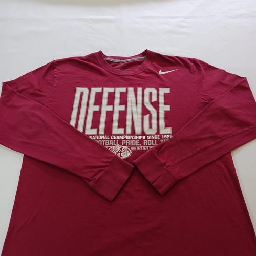Show off your football pride with this Nike Standard Fit Dixie's Football Pride Men's Red Cotton T-Shirt. Made with lightweight and breathable fabric, this shirt is perfect for all seasons. The shirt features a classic fit, long sleeves, and a crew neckline. It comes in a vibrant red color with a solid pattern and a Nike logo accent.