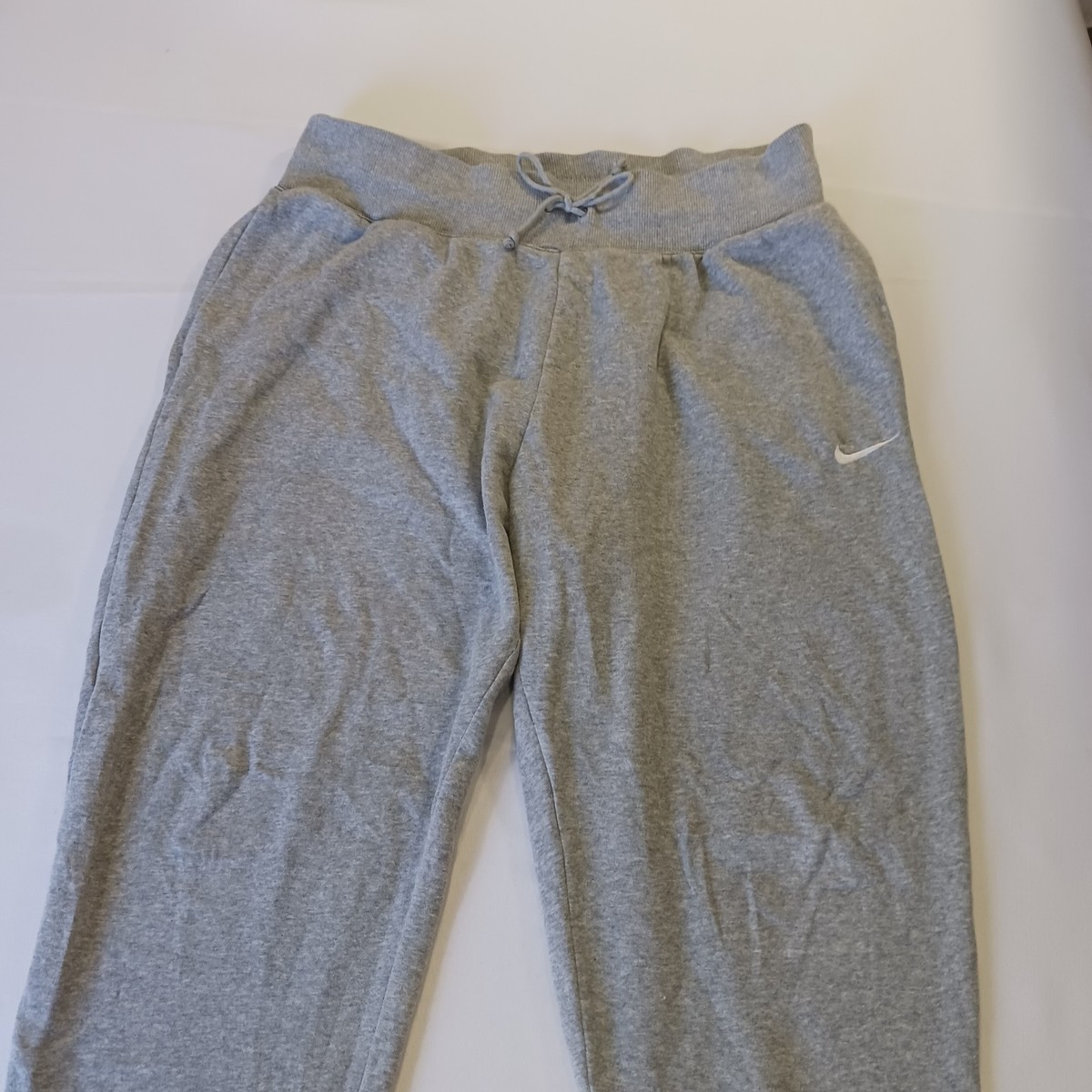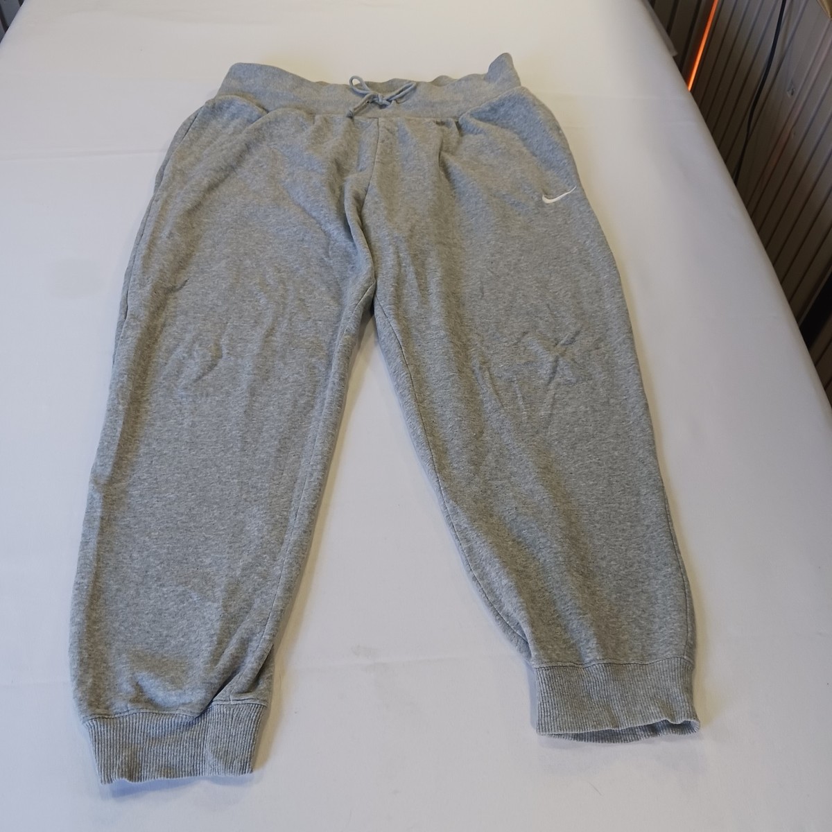 The Nike Women's XL Gray Sportswear Phoenix High-Waisted Joggers (Style DQ5688-063) are a stylish and comfortable pair of activewear pants perfect for various occasions like gym workouts, walking, cross-training, running, and jogging. Made from a blend of polyester and cotton with a fleece fabric type, these joggers offer comfort and warmth. The drawstring closure and adjustable waist make them a versatile choice for different waist sizes (36 inches). Featuring a modern solid gray color and a leg-friendly inseam of 28 inches, these joggers are a must-have for any woman's activewear collection.