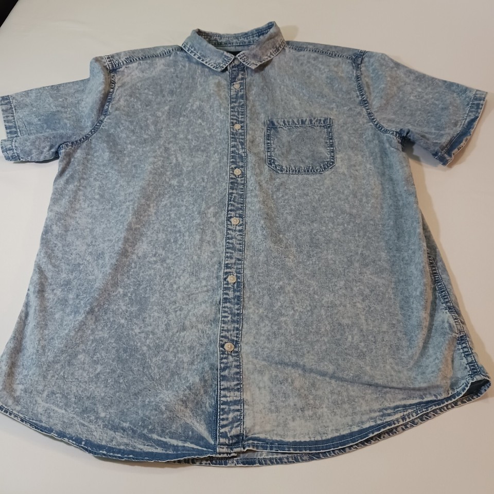 • No Boundaries Men’s Faded Blue Cotton Collar Shirt Short Sleeve Size L (42-44) image 4