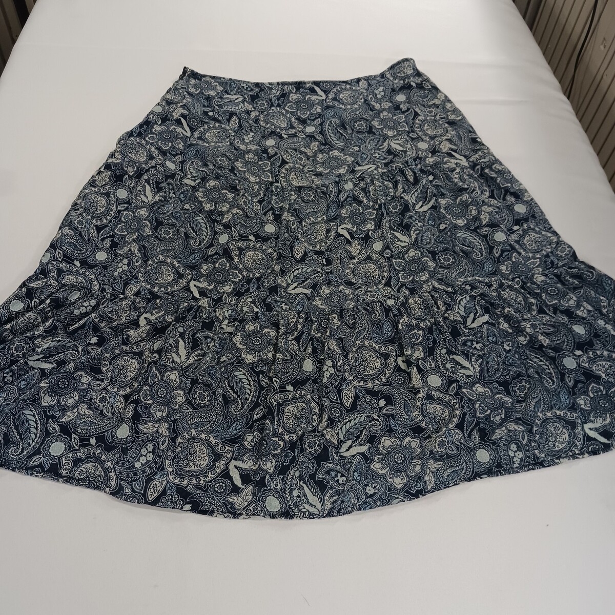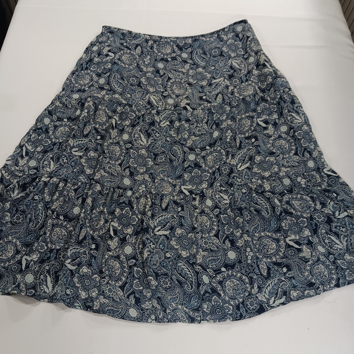 The Notations WYRK0027 Women's Blue/White Paisley Side Zipper Skirt in size 1X is a stylish and versatile piece perfect for various occasions. Made from polyester, this midi-length skirt features a pleated design with a mid-rise waist. The paisley pattern in blue and white adds a touch of elegance, while the side zipper closure makes it easy to wear. This skirt is suitable for parties, casual outings, or business events throughout the seasons of winter, summer, fall, and spring. With the brand's attention to detail and quality craftsmanship, this skirt is a must-have for any woman's wardrobe.