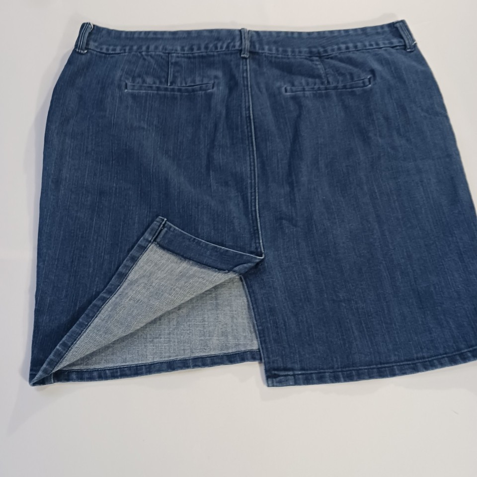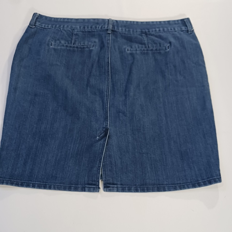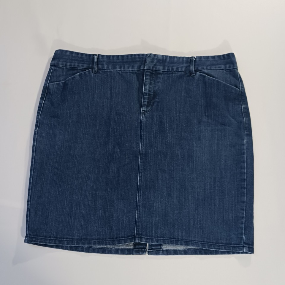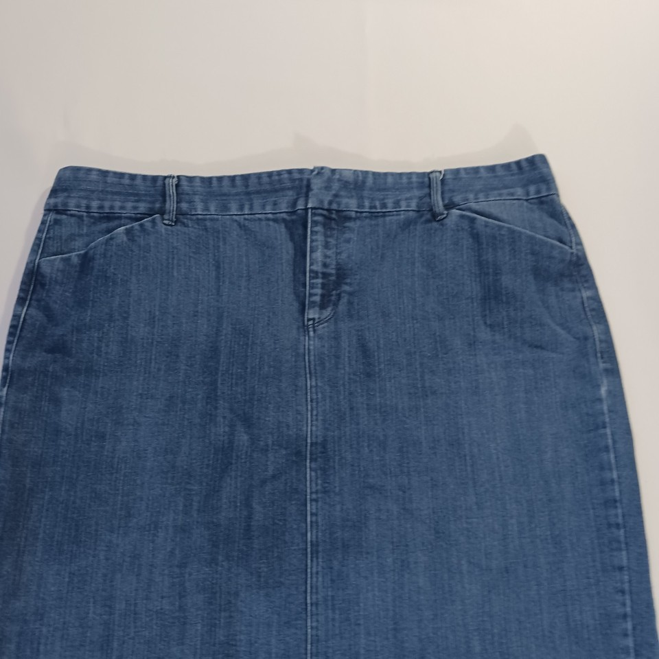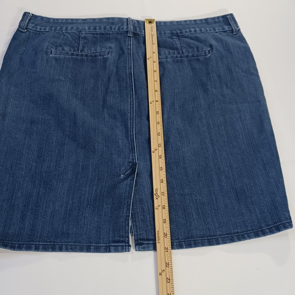 The Old Navy Denim Jean Skirt in Women's Size 18 is a stylish and versatile addition to any wardrobe. This blue trouser skirt features a back slit for added flair and is made from a comfortable blend of polyester, spandex, and cotton. With a straight and pencil style, this skirt is perfect for casual or workwear occasions and is easy to care for with machine washable fabric. Perfect for adding a touch of classic denim to your outfit while still being on-trend.