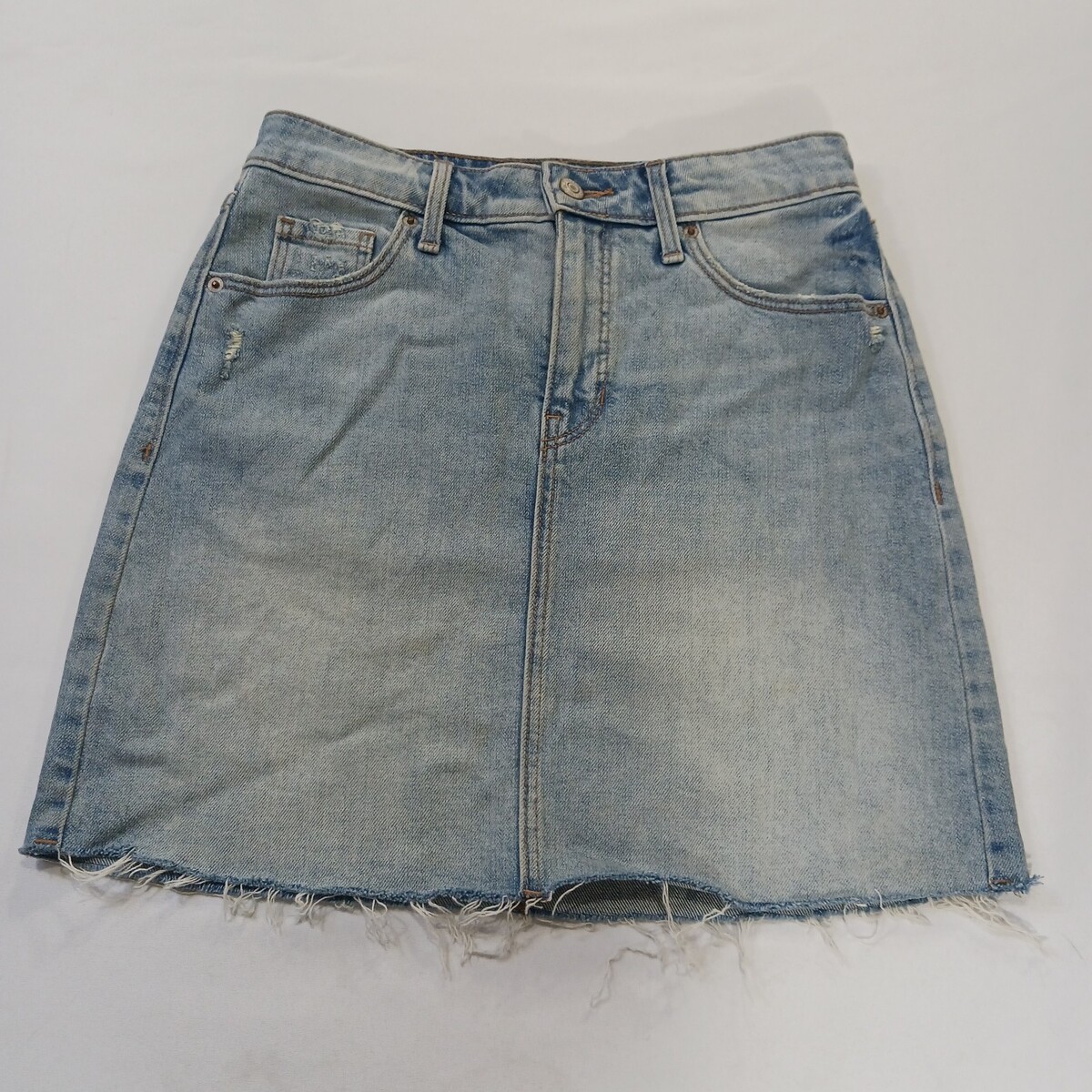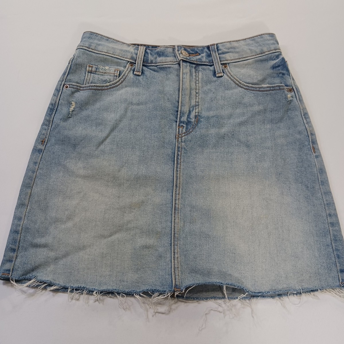 • Old Navy RN#160476 Women's Blue Frayed Bottom Pockets Denim Mini Skirt Size 0 image 7