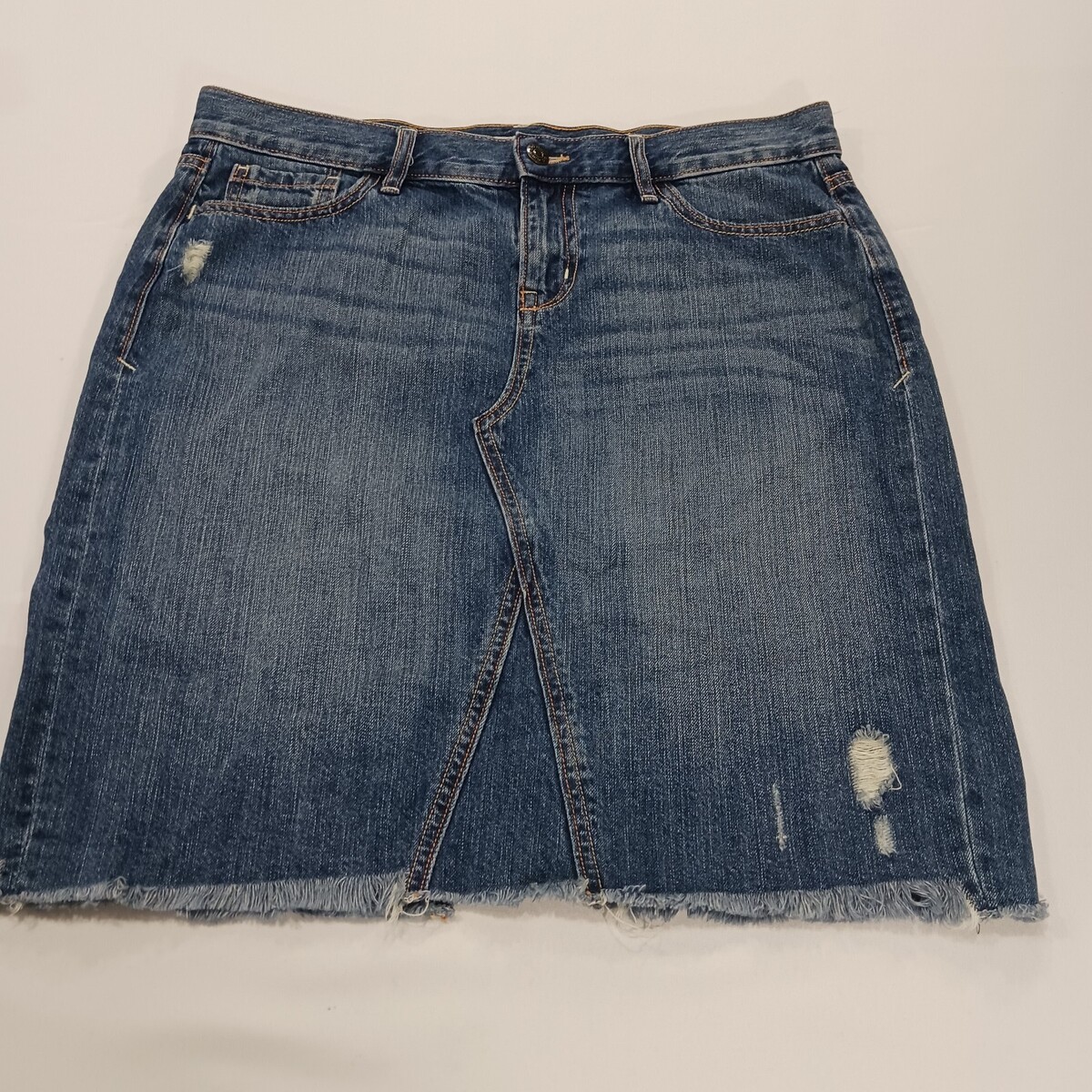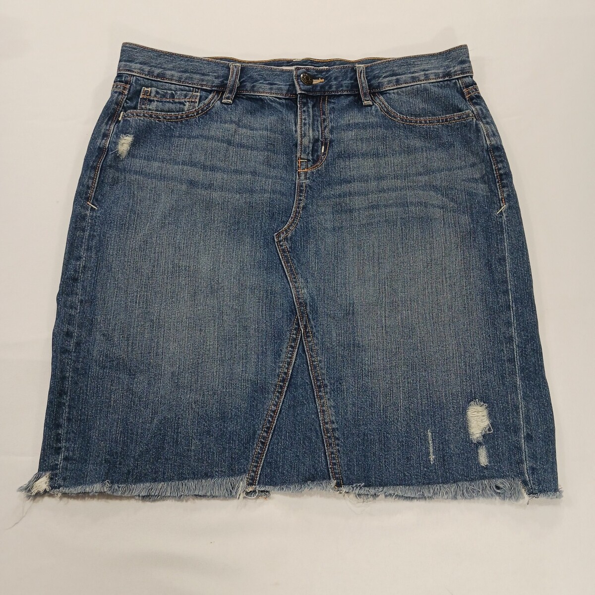• Old Navy RN#54023 Women's Blue Cotton Frayed Bottom Denim Skirt Size 8 image 8