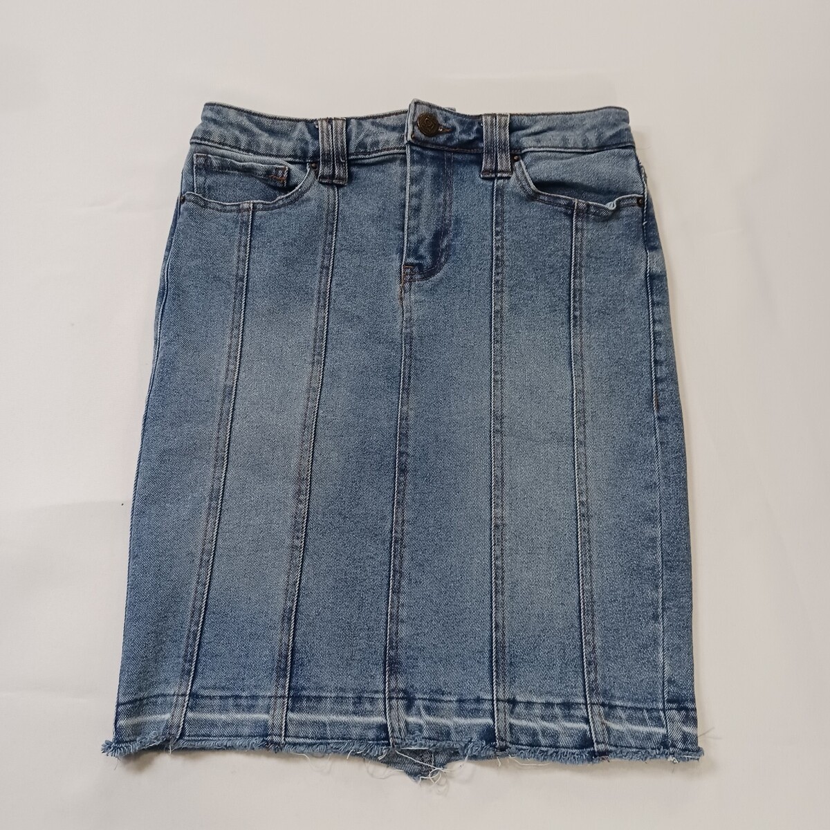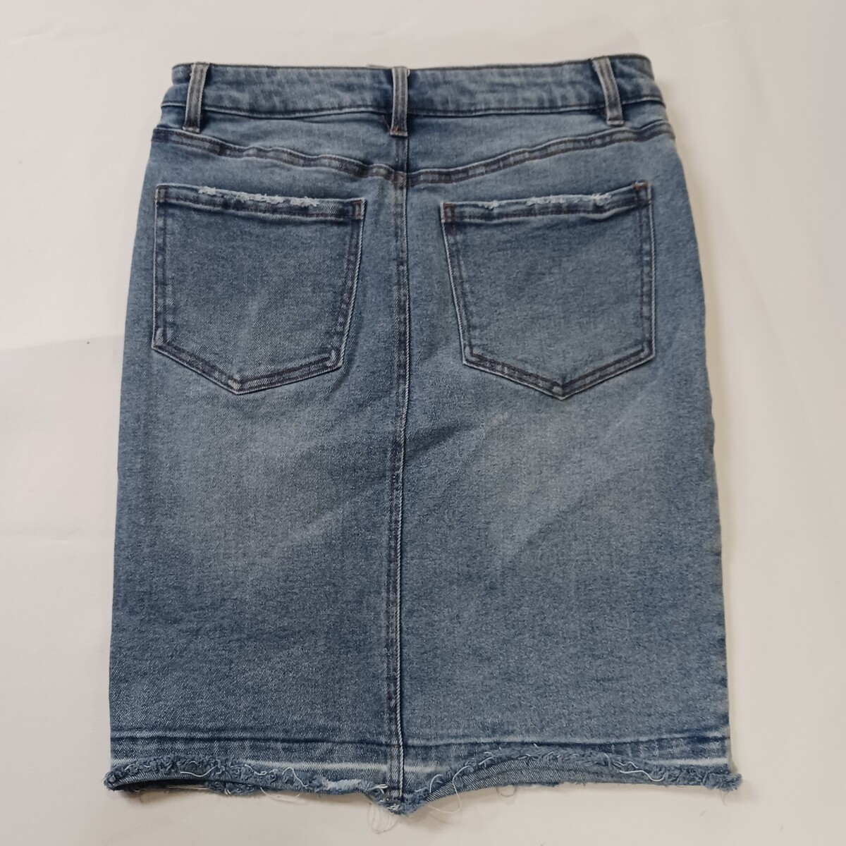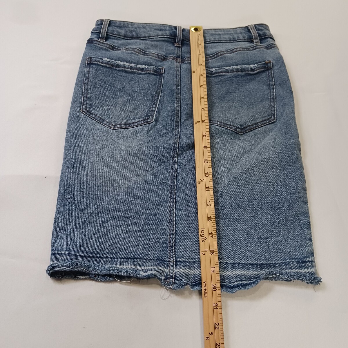 The One 5 One MS239752 Women's Blue Pencil Stretch Denim Skirt is a stylish and versatile piece perfect for casual occasions. Made from a blend of polyester, spandex, and rayon, this skirt features a straight and pencil style with a solid blue color and frayed pockets for added flair. The zip closure and stretch fabric make it comfortable and easy to wear, while the 20-inch length adds a touch of sophistication to any outfit. Perfect for a trendy and preppy look, this skirt is a must-have for any fashionable woman's wardrobe.