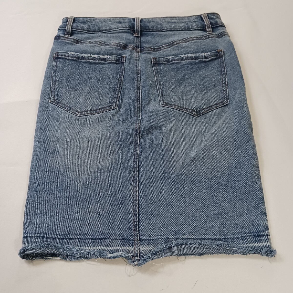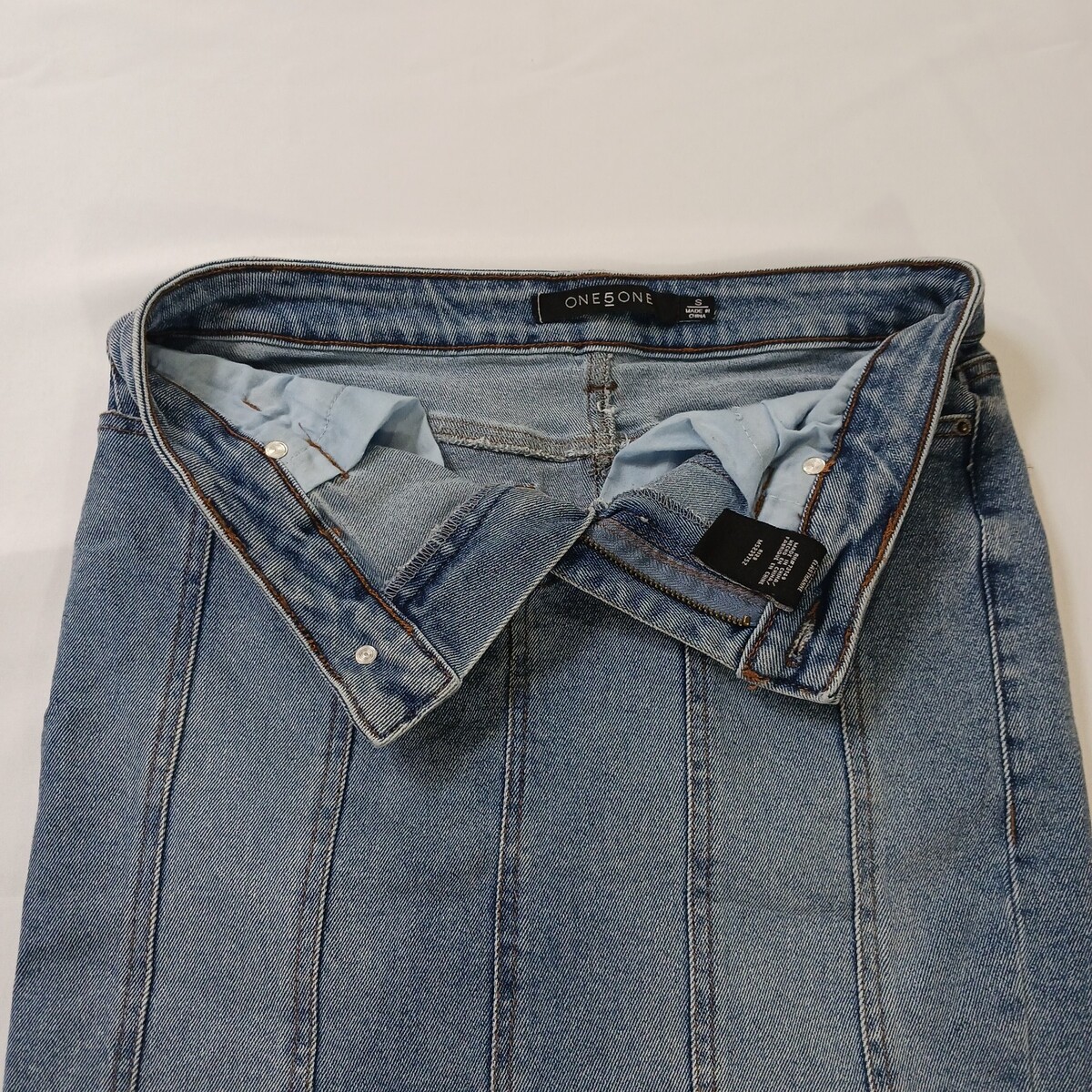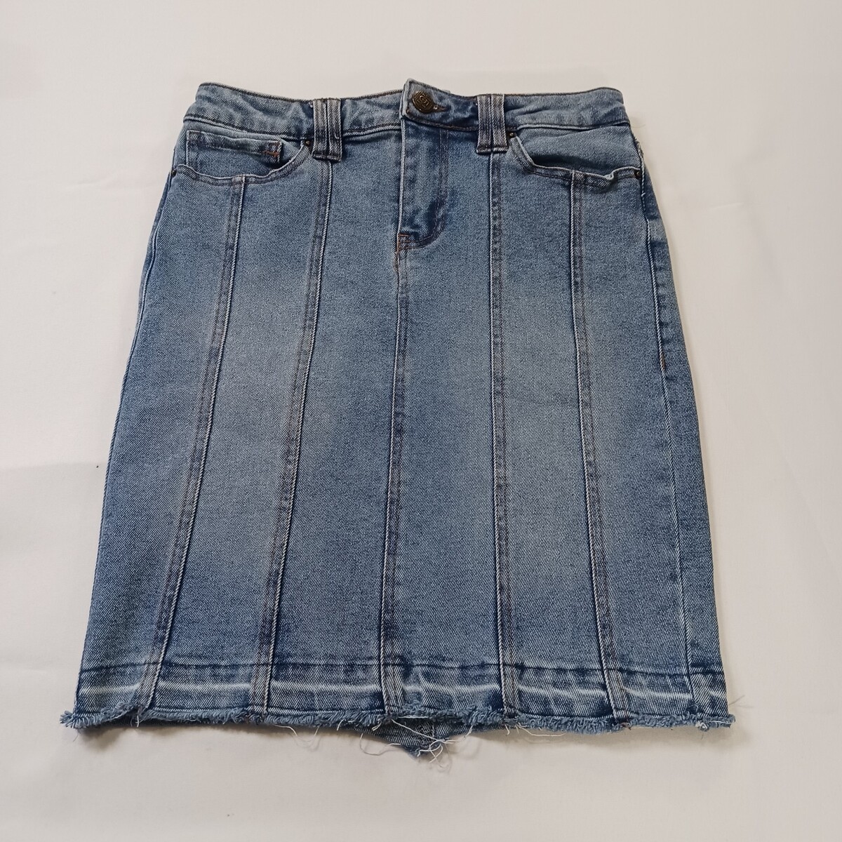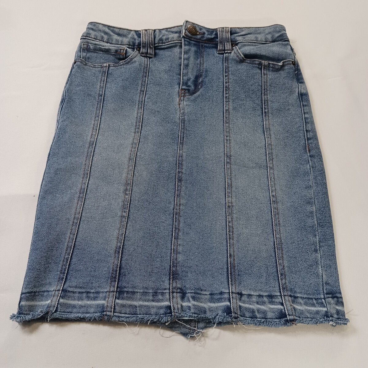 The One 5 One MS239752 Women's Blue Pencil Stretch Denim Skirt is a stylish and versatile piece perfect for casual occasions. Made from a blend of polyester, spandex, and rayon, this skirt features a straight and pencil style with a solid blue color and frayed pockets for added flair. The zip closure and stretch fabric make it comfortable and easy to wear, while the 20-inch length adds a touch of sophistication to any outfit. Perfect for a trendy and preppy look, this skirt is a must-have for any fashionable woman's wardrobe.