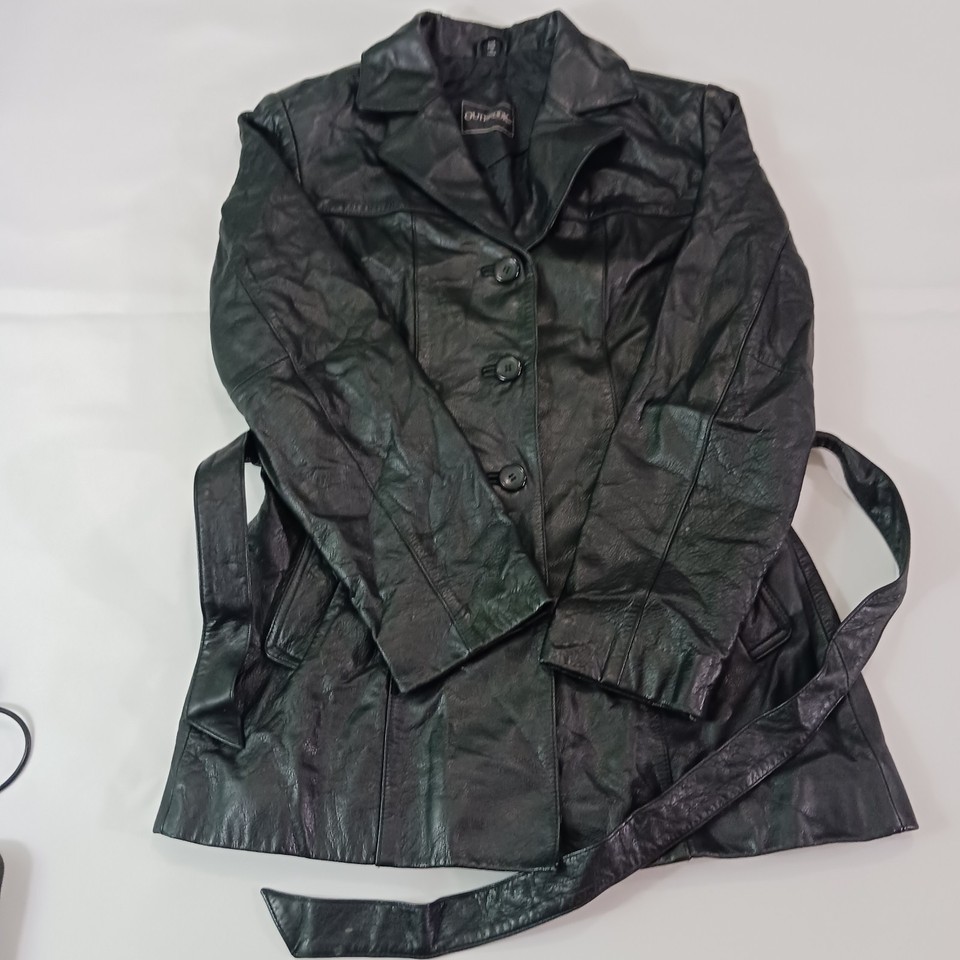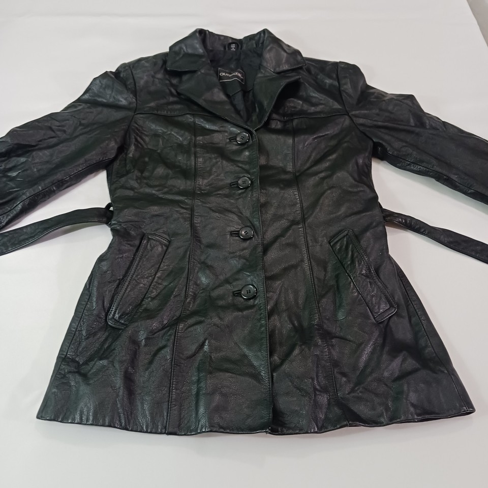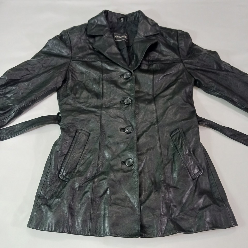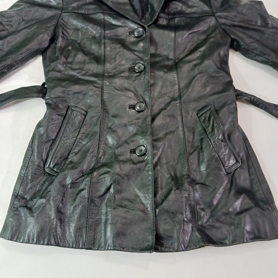 Elevate your style with this chic black biker jacket from OutBrook. The jacket is crafted from genuine leather and features a belted fit with button accents. It has a classic biker look that is perfect for travel, parties, workwear, and casual occasions.