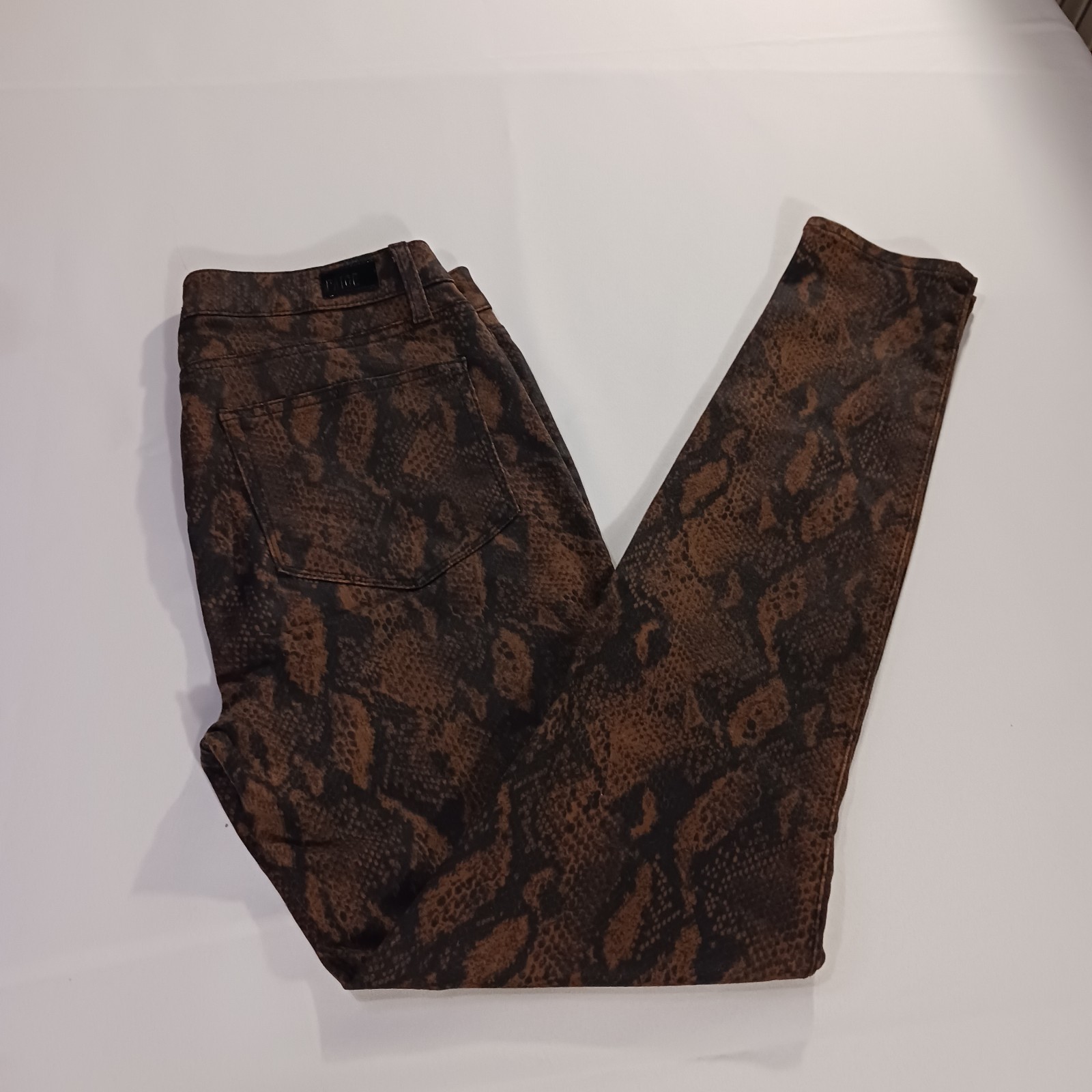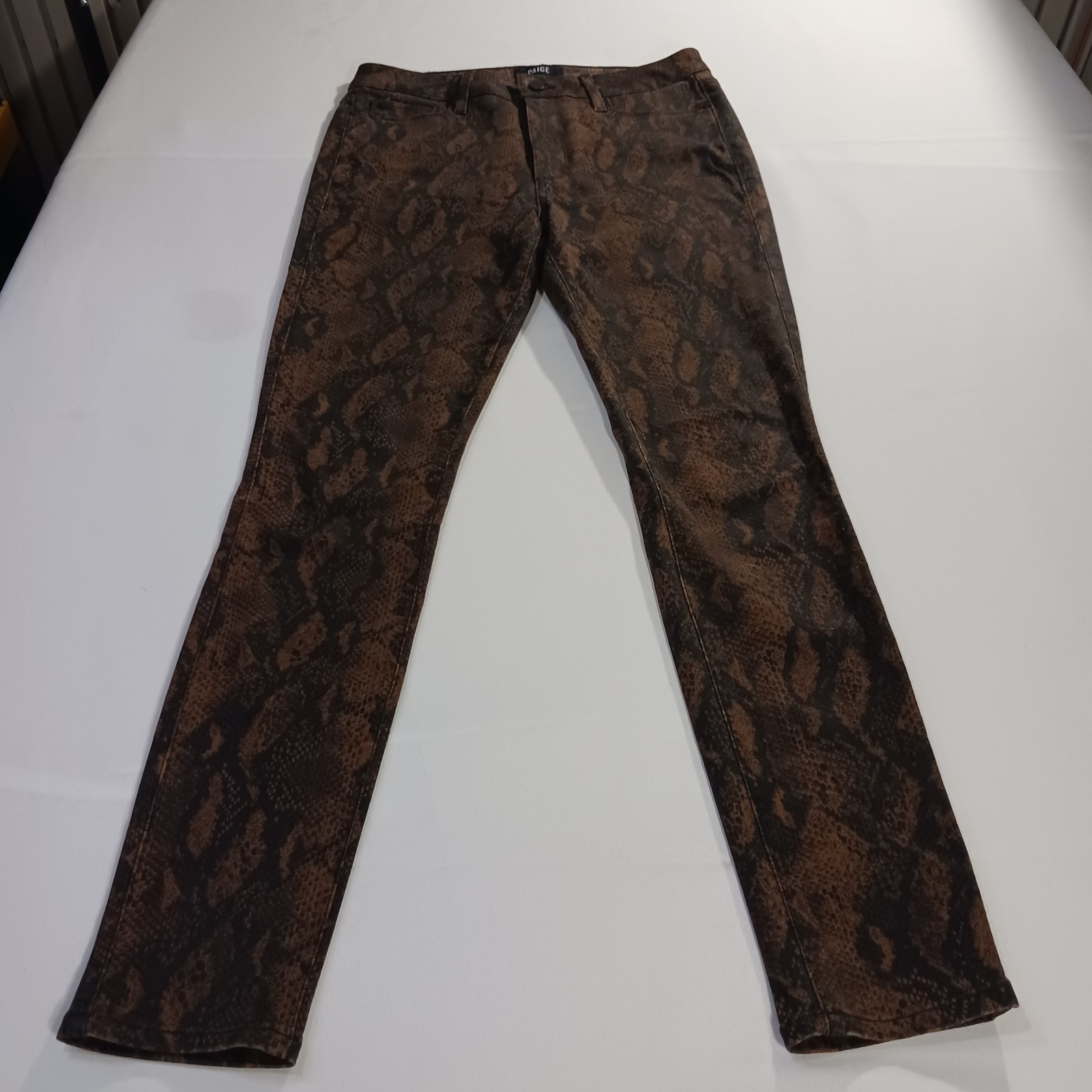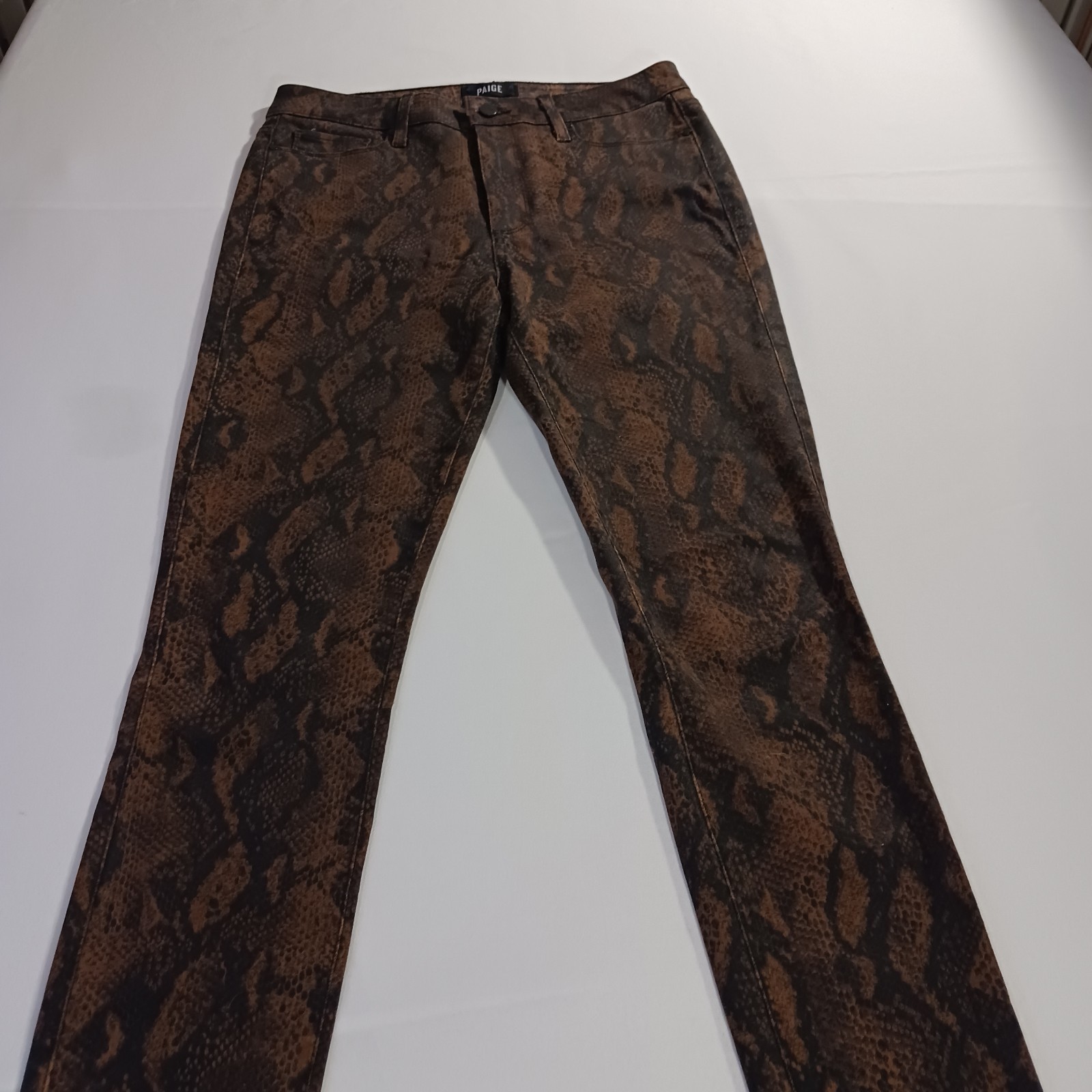 • PAIGE W6510 Women's Hoxton Ultra Skinny Coated Brown Snake Print Jeans Size 30 image 1