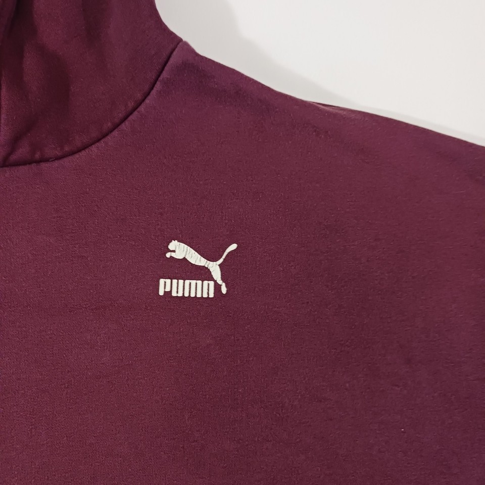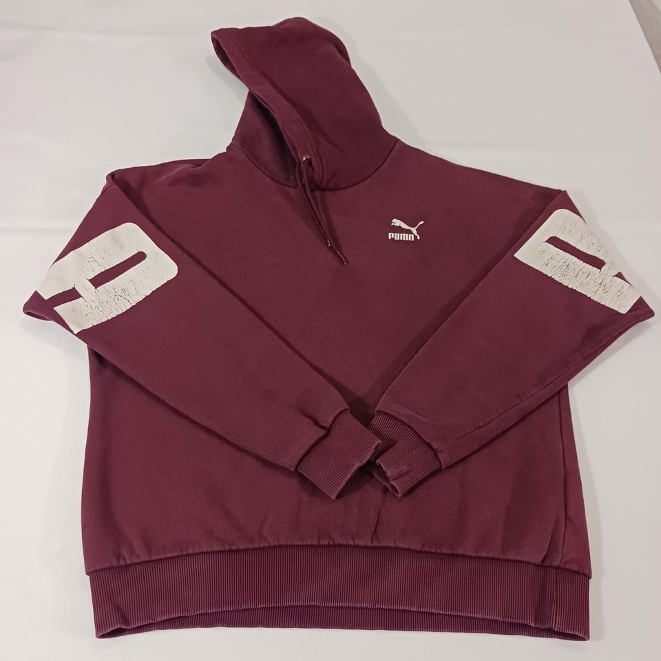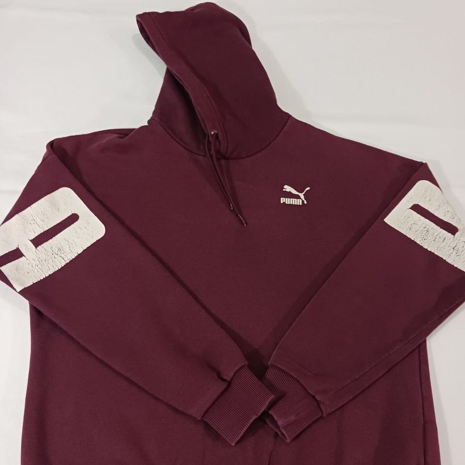 This PUMA Men's Red Cotton Blend Drawstring Pullover Hoodie Sweatshirt in size small features a solid design with long sleeves and a drawstring closure. Made from a blend of polyester and cotton, this hoodie is machine washable and showcases the PUMA logo as an accent. With a regular fit and a pullover style, it includes pockets for added convenience. Ideal for activities such as gym training, walking, and basketball, this hoodie combines comfort and style for men on the go.