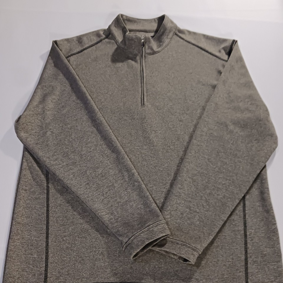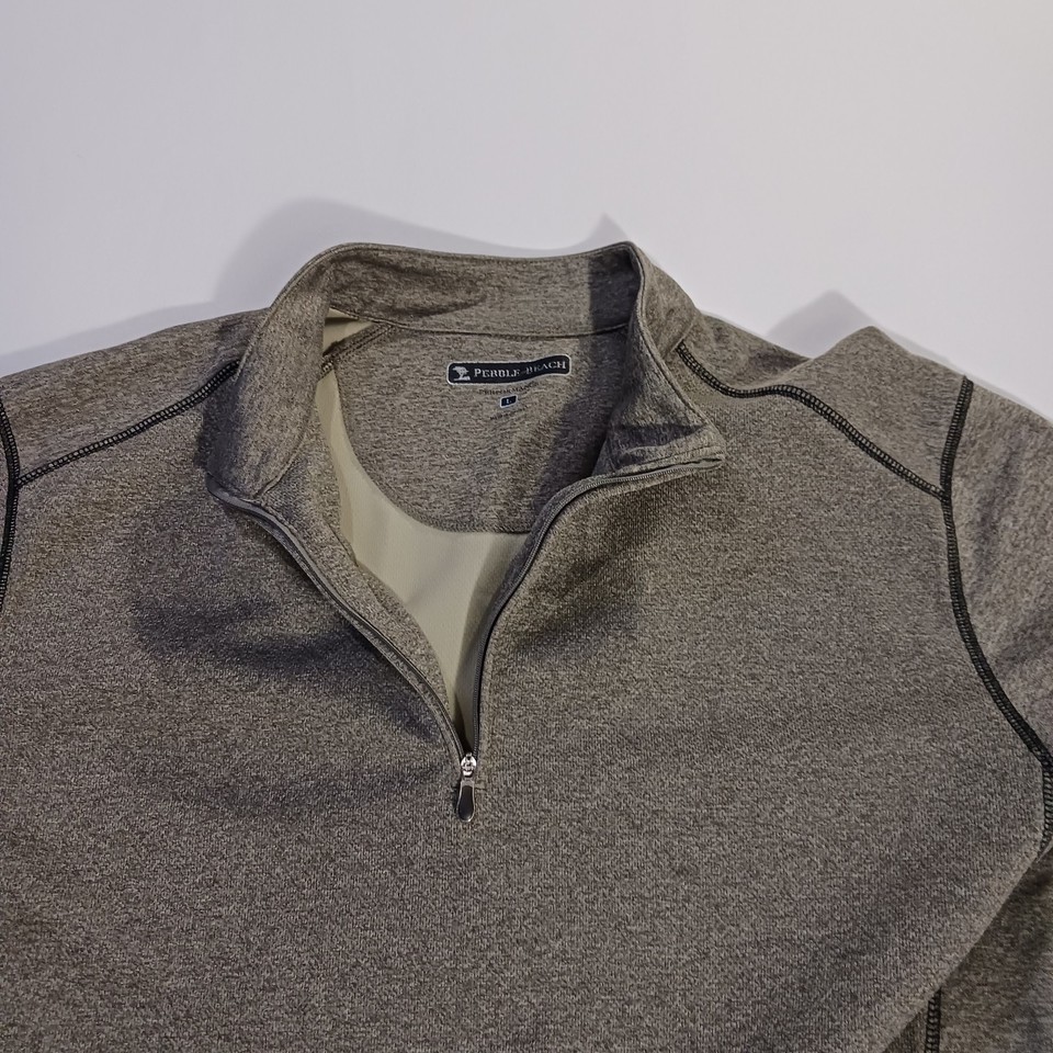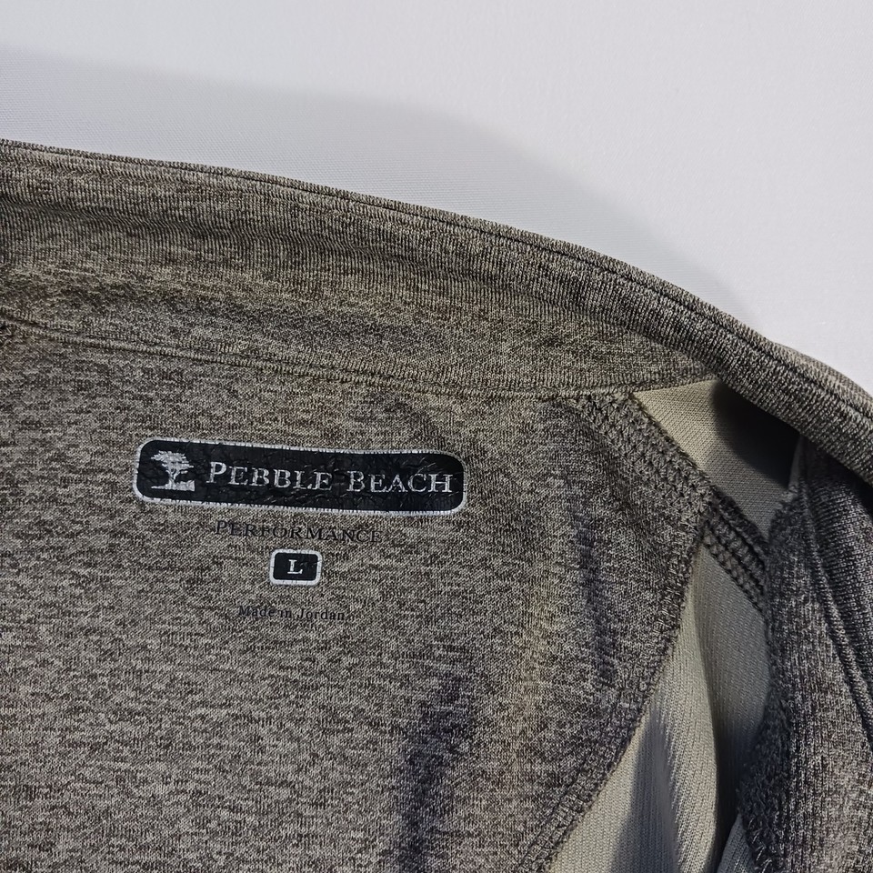 The Pebble Beach Performance Men's Green 1/4 Zip Golf Pullover Sweatshirt in size Large is a stylish and functional piece of activewear perfect for any golfer. Made from polyester microfiber material, this sweatshirt features a solid green color with a mock neck and long sleeves for comfort and style. The 1/4 zip closure and logo accents add a touch of detail, while the regular fit ensures a comfortable and flattering silhouette. Whether you're hitting the links or running errands, this pullover sweatshirt is a versatile option for your wardrobe.