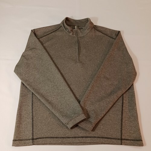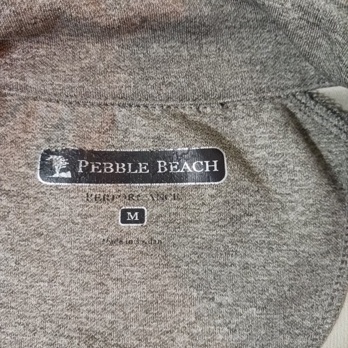 The Pebble Beach Performance Men's Green 1/4 Zip Golf Pullover Sweatshirt in size M features a solid design with a mock neck and long sleeves for added comfort on the golf course. Made of microfiber fabric, this pullover offers a regular fit and is accented with a zipper and Pebbles logo. Ideal for golf and performance activities, this sweatshirt combines style and functionality for a versatile addition to any golfer's wardrobe.