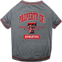 The Pets First Texas Tech Red Raiders Dog T-Shirt in size XS is a gray collegiate shirt designed for small dogs. Made of polyester material, this shirt showcases the team's colors with a striking red accent. Perfect for showing off team spirit during games or daily walks, this shirt is both comfortable and stylish for your furry companion.