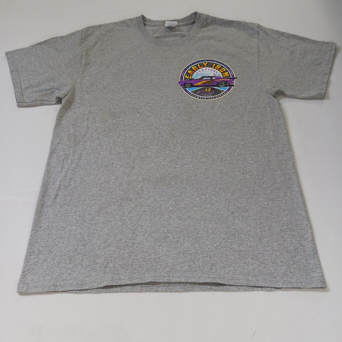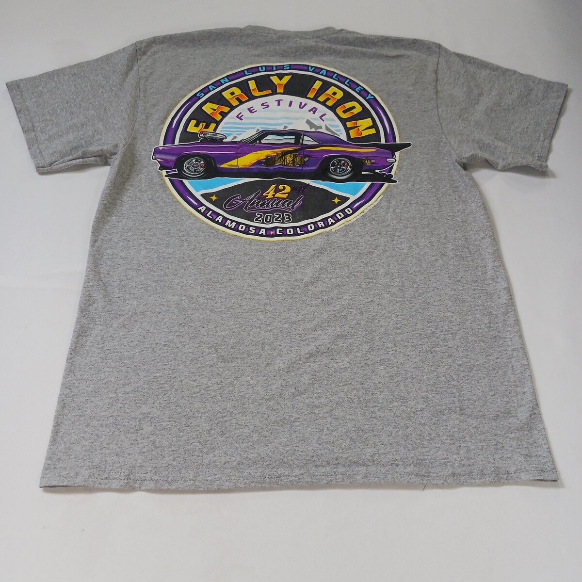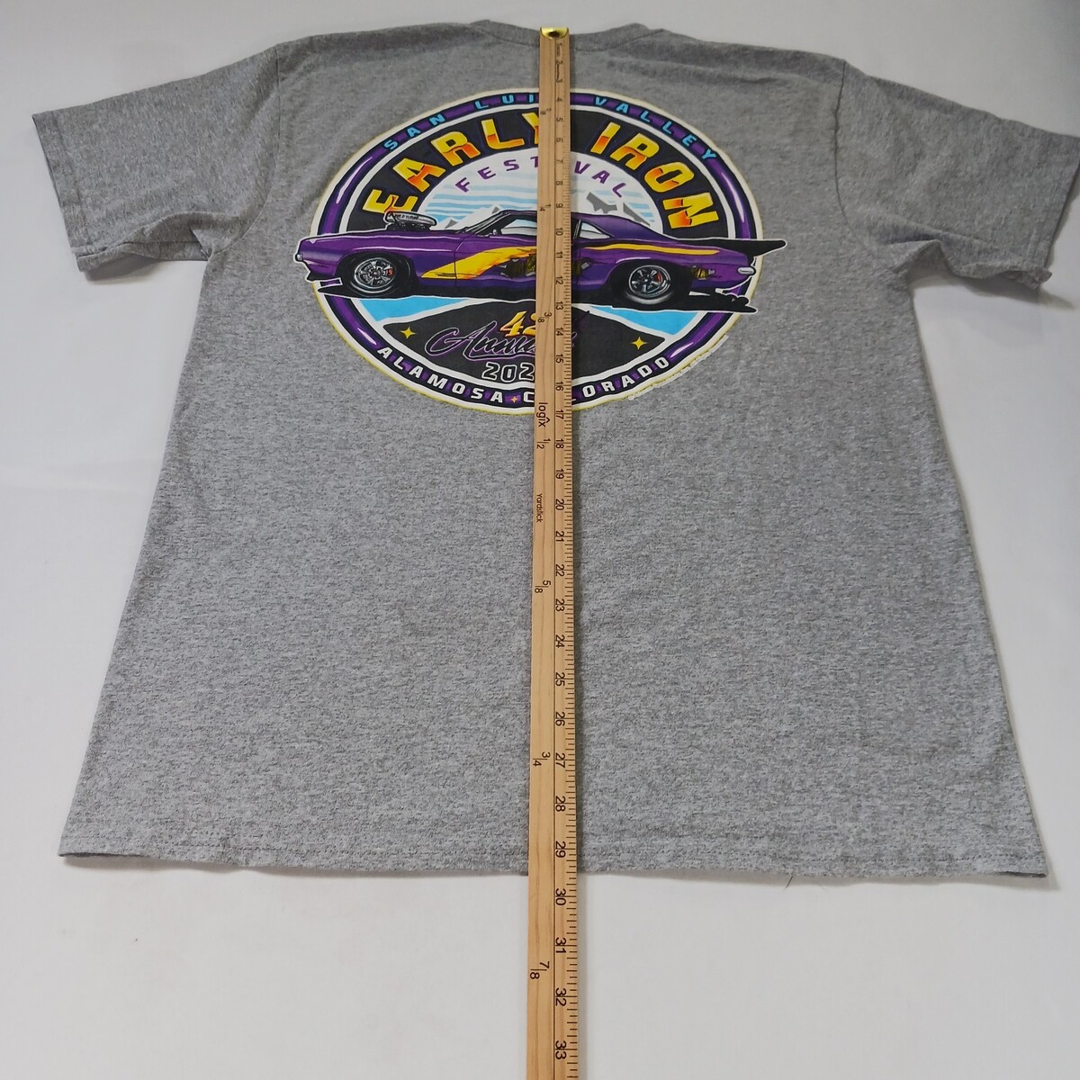 The Port & Company San Louis Valley Festival Men's Gray Cotton Graphic T-Shirt in size L is a versatile and comfortable option for men looking for a regular fit shirt. Made from a blend of polyester and cotton, this shirt is suitable for all seasons and features a solid gray color with a crew neck and short sleeves. The shirt is designed by Port & Company and is not vintage, making it a classic and timeless addition to any wardrobe. Made in Honduras, this T-shirt offers style and quality for everyday wear.