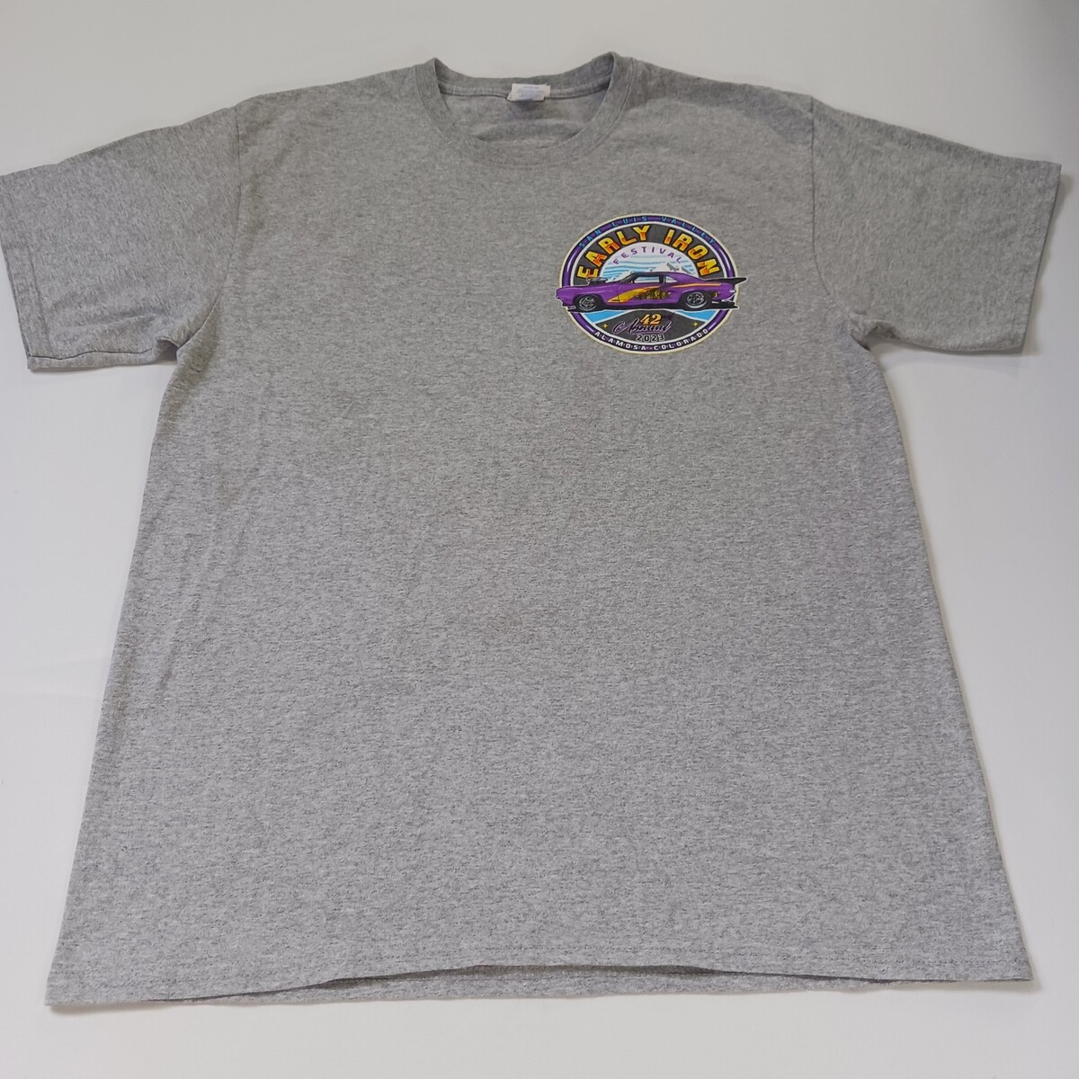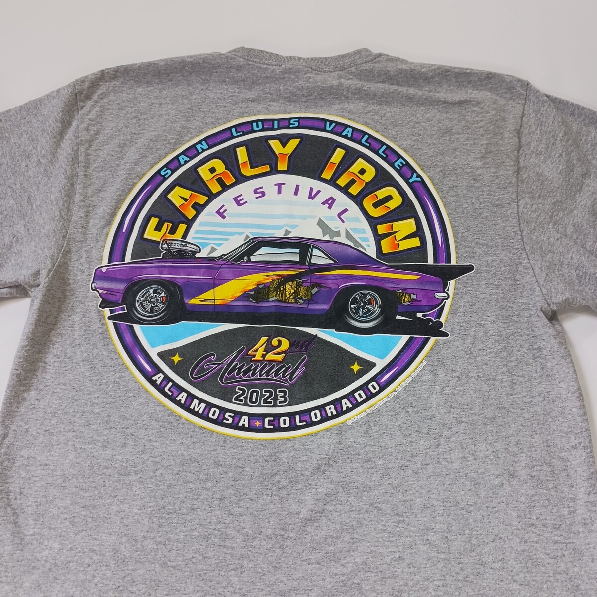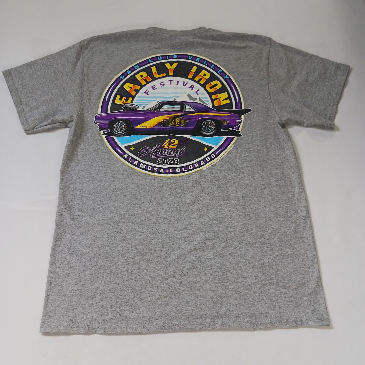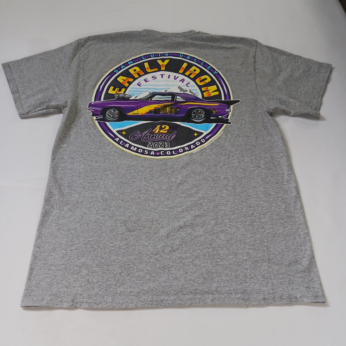 The Port & Company San Louis Valley Festival Men's Gray Cotton Graphic T-Shirt in size L is a versatile and comfortable option for men looking for a regular fit shirt. Made from a blend of polyester and cotton, this shirt is suitable for all seasons and features a solid gray color with a crew neck and short sleeves. The shirt is designed by Port & Company and is not vintage, making it a classic and timeless addition to any wardrobe. Made in Honduras, this T-shirt offers style and quality for everyday wear.