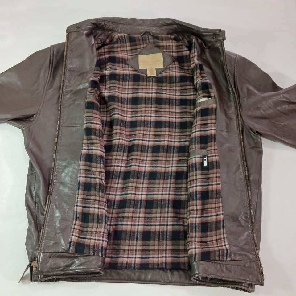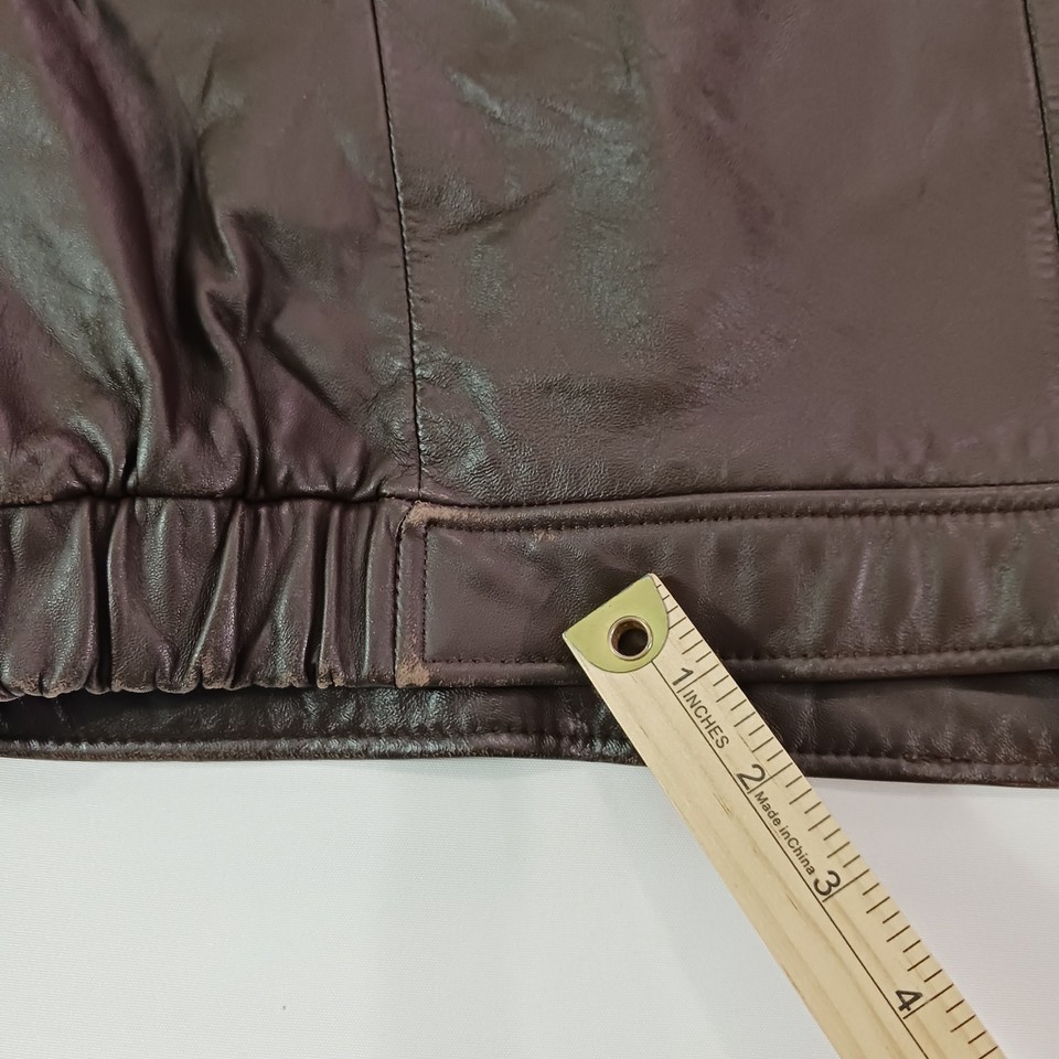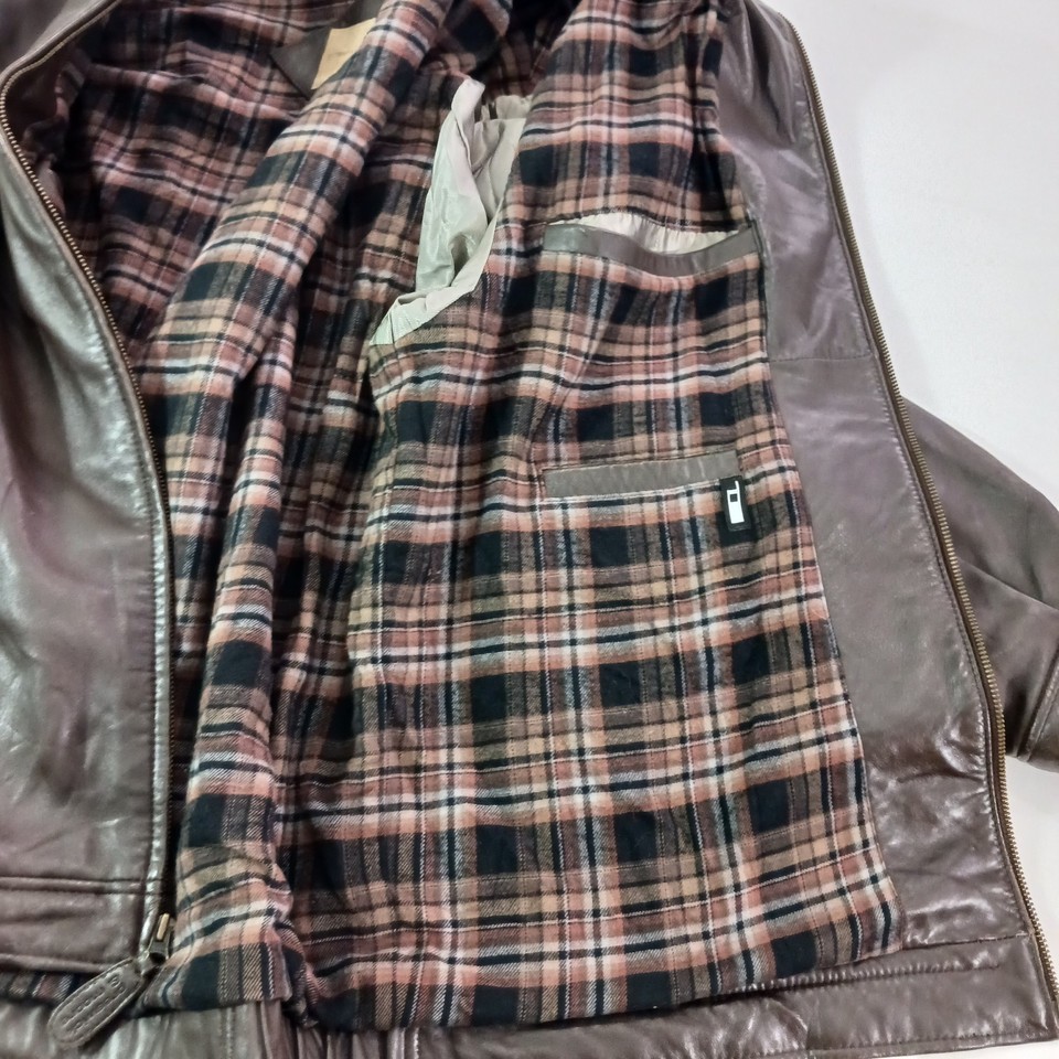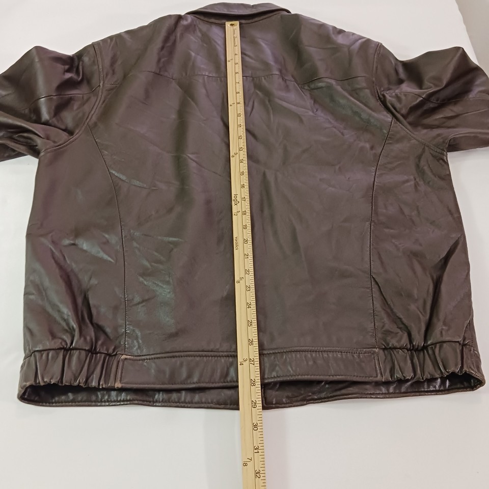 Elevate your style with this classic brown leather jacket from Preswick & Moore. Made from genuine leather, this jacket features a full zip closure, spread collar, and solid pattern. The jacket is lined with polyester and has a full zip feature for added warmth.