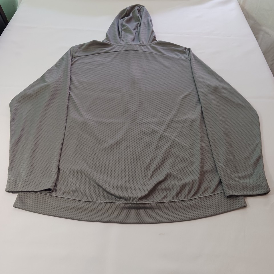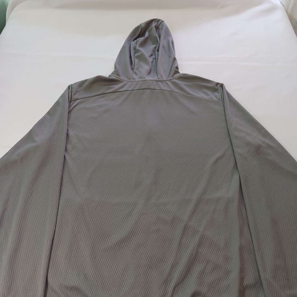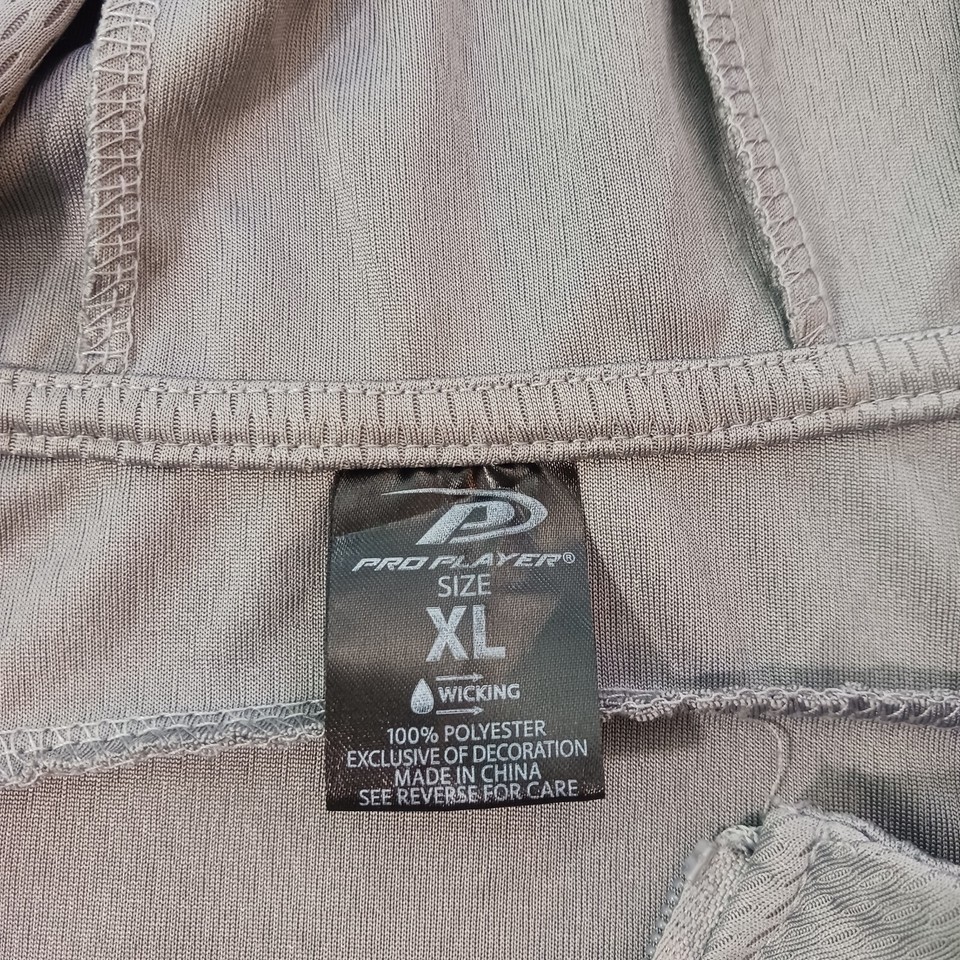 This Pro Player lightweight windbreaker jacket is the perfect addition to any sports enthusiast's wardrobe. The gray color and solid pattern make it a versatile piece that can be worn during any outdoor activity. The jacket's full zip closure and zipper accents add a touch of style to this vintage piece.