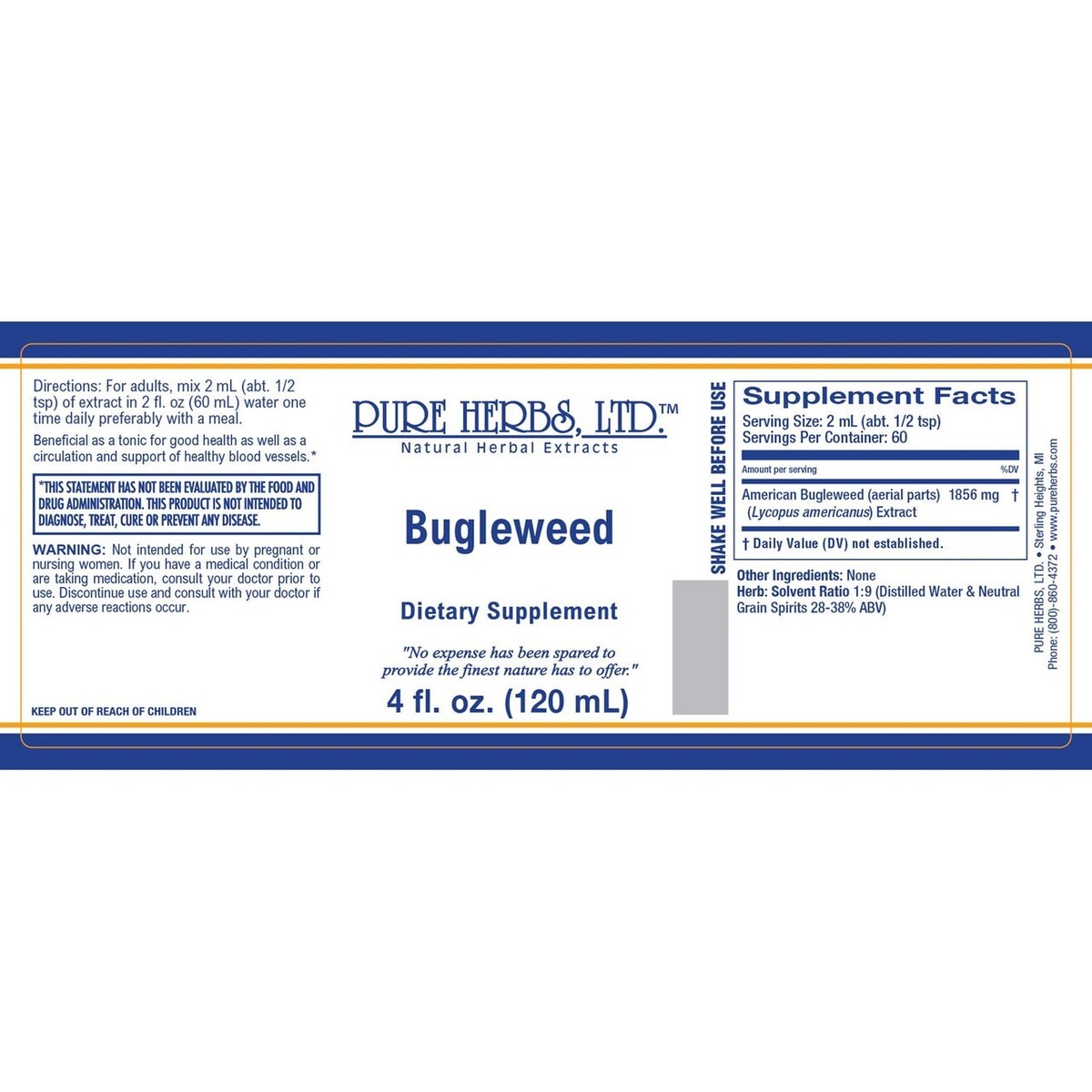 Pure Herbs: Bugleweed - 4 oz. (Natural Herbal Extracts).