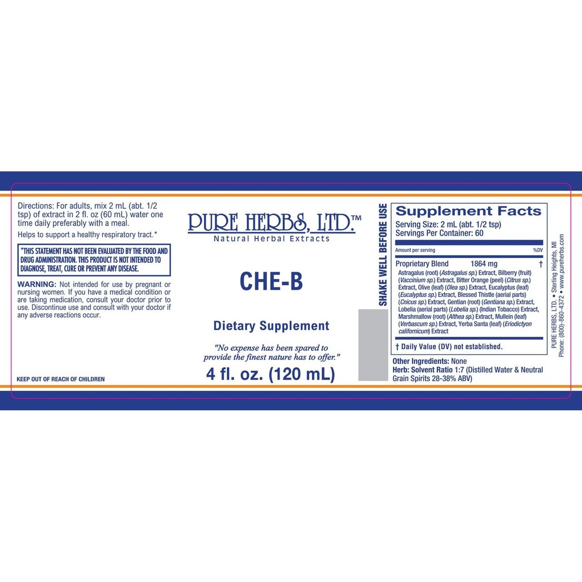 Pure Herbs: CHE-B - 4 oz. (Natural Herbal Extracts).