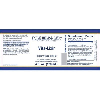 Pure Herbs: Vita-Lixir - 4 oz. (Natural Herbal Extracts).