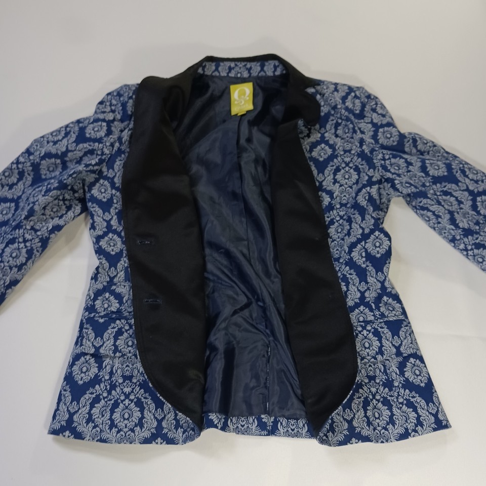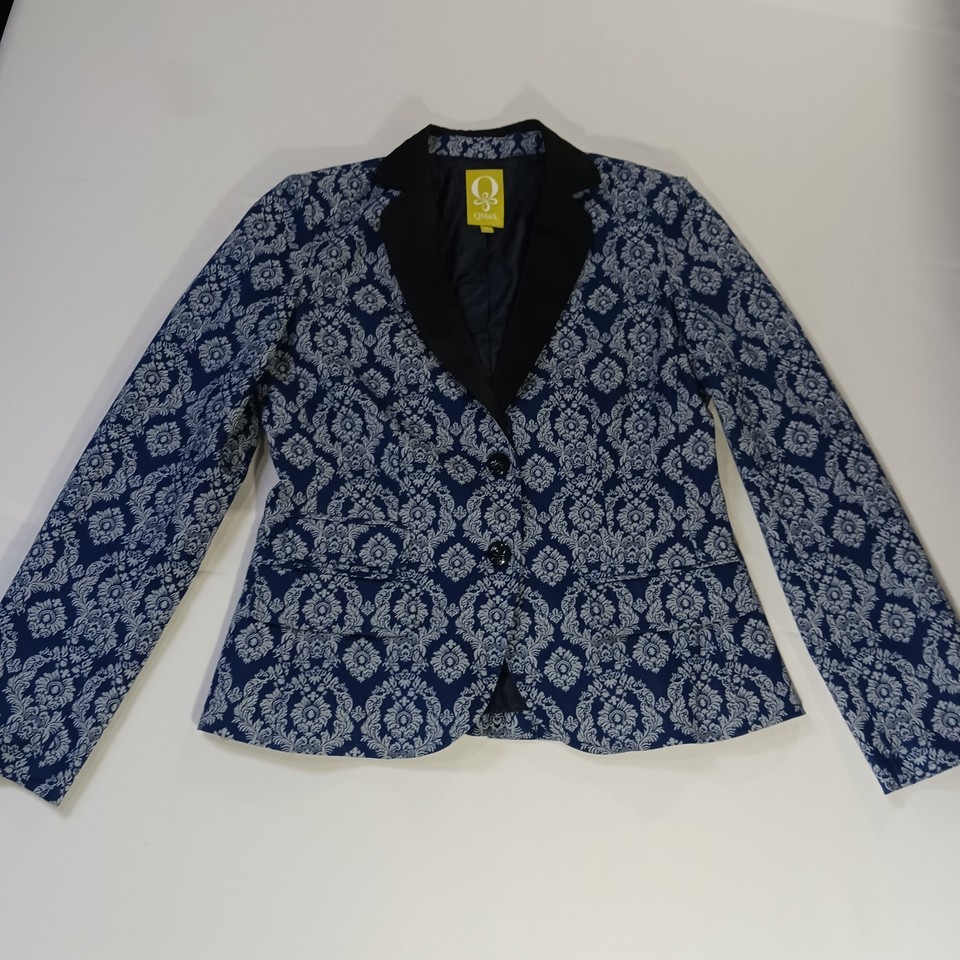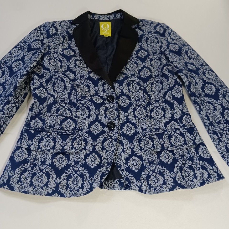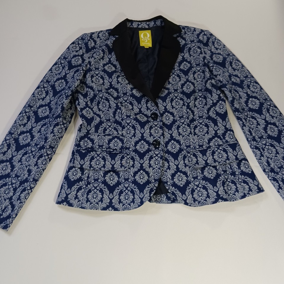 • QMack Womens Blazer Jacket White & Blue Floral Collared Two Button Coat - Size 6 image 1