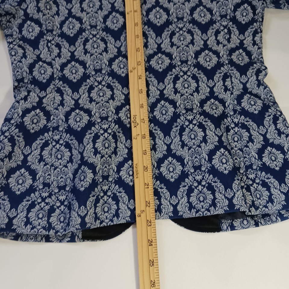 • QMack Womens Blazer Jacket White & Blue Floral Collared Two Button Coat - Size 6 image 15