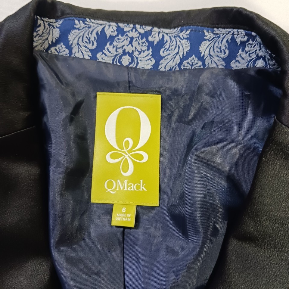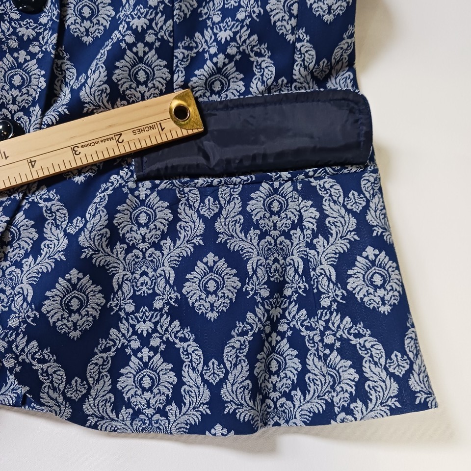 • QMack Womens Blazer Jacket White & Blue Floral Collared Two Button Coat - Size 6 image 11
