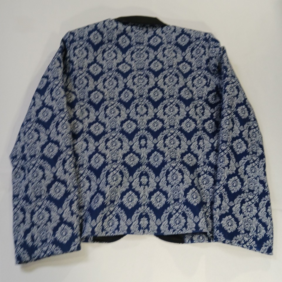 QMack Womens Blazer Jacket White & Blue Floral Collared Two Button Coat - Size 6