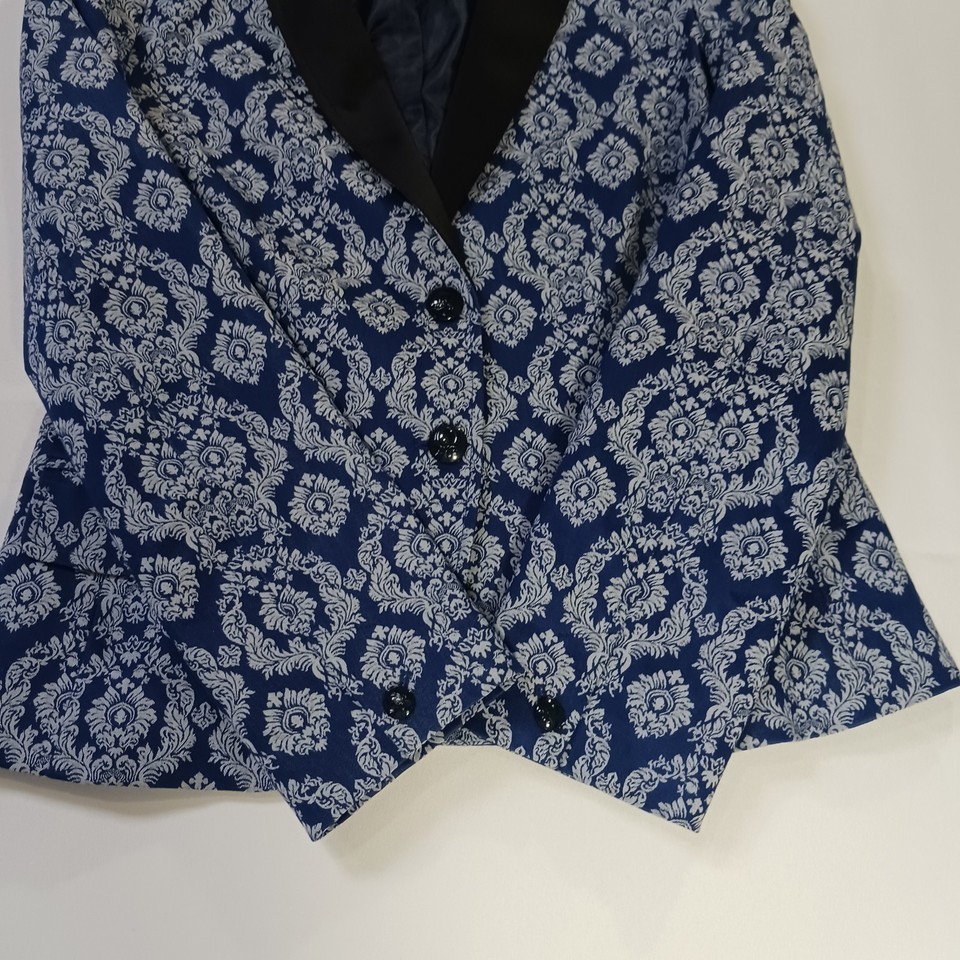 • QMack Womens Blazer Jacket White & Blue Floral Collared Two Button Coat - Size 6 image 5