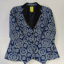 • QMack Womens Blazer Jacket White & Blue Floral Collared Two Button Coat - Size 6 image 12