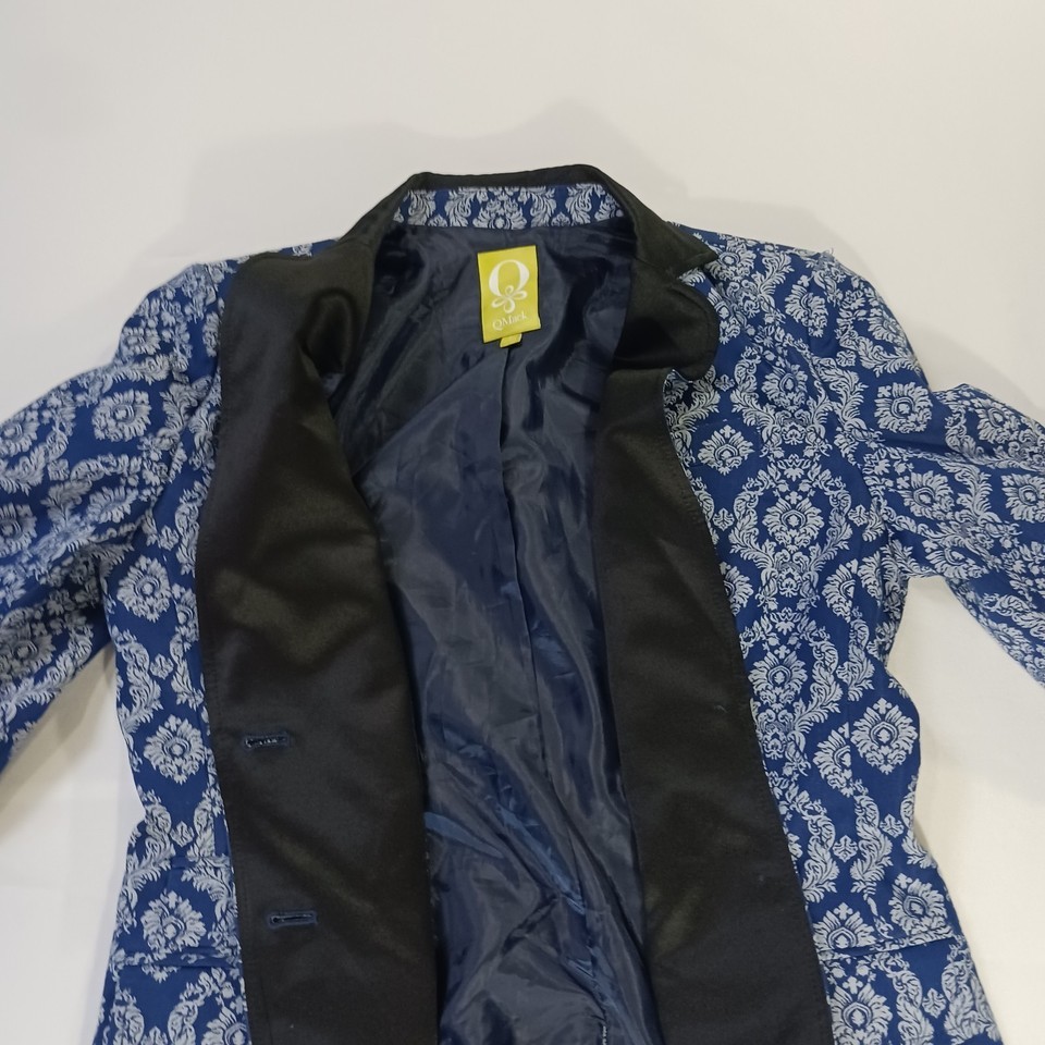 The QMack Women's Blazer Jacket in white and blue floral is a stylish and versatile addition to any wardrobe. Made from a comfortable cotton blend with a breathable polyester lining, this coat features a classic collared design and a two-button closure for a sophisticated look. Perfect for casual occasions in winter, fall, or spring, this designer piece from QMack is machine washable for easy care. With its colorful floral pattern and timeless blazer style, this jacket is sure to make a statement in your outfit.
