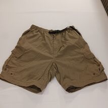 The REI Men's Brown Nylon Belted Cargo Shorts in size Large (30×8) are a versatile and practical addition to any outdoor enthusiast's wardrobe. Made from durable nylon with a microfiber fabric type, these shorts feature a solid brown color and a comfortable regular fit. With a zip and button closure, straight leg style, and cargo pocket design, these shorts are perfect for travel and casual occasions in the warm weather of summer, fall, and spring. The 6 pockets and belted design add functionality to these stylish and functional cargo shorts from REI.