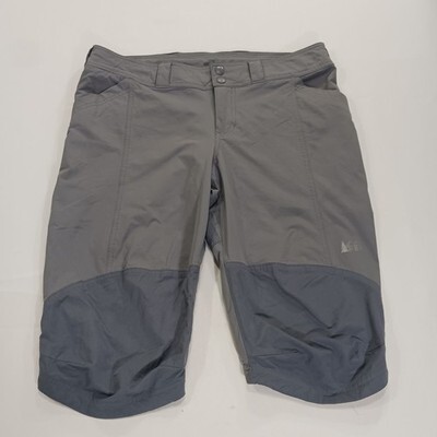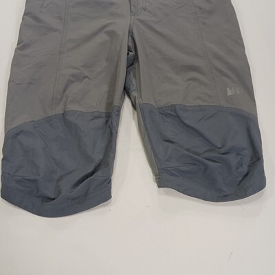 These REI women's gray nylon spandex blend stretch shorts in size 12 are perfect for travel and casual occasions. With a solid pattern and flat front design, they feature an elastic waist for a comfortable fit. Made of a blend of polyester and spandex, these shorts are lightweight and stretchy, making them ideal for warm weather. The mid-rise and straight leg style offer a flattering silhouette, while the nature, beach, logo, and sports themes add a stylish touch to your look. Easy to care for with machine washable instructions, these shorts are a versatile addition to any wardrobe.