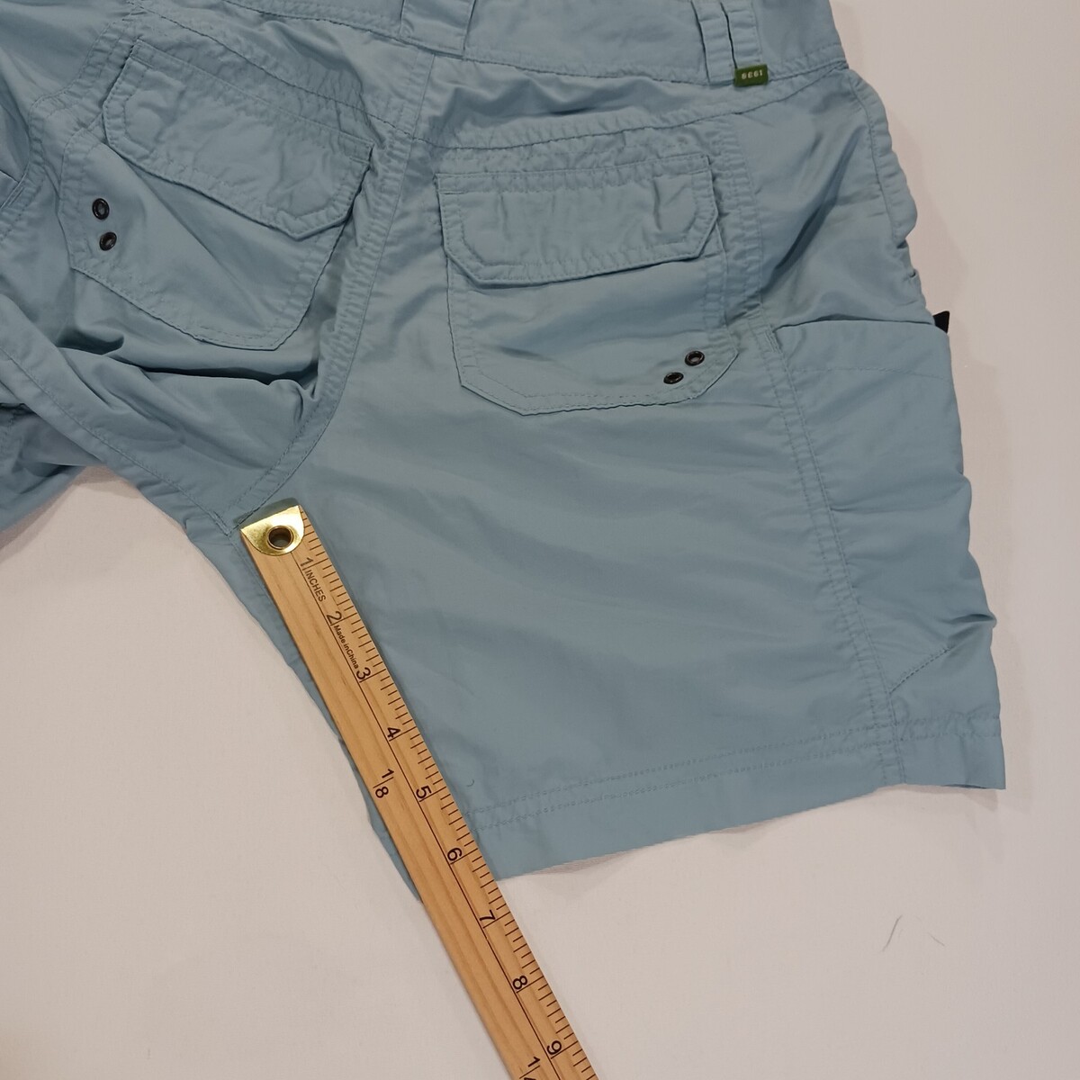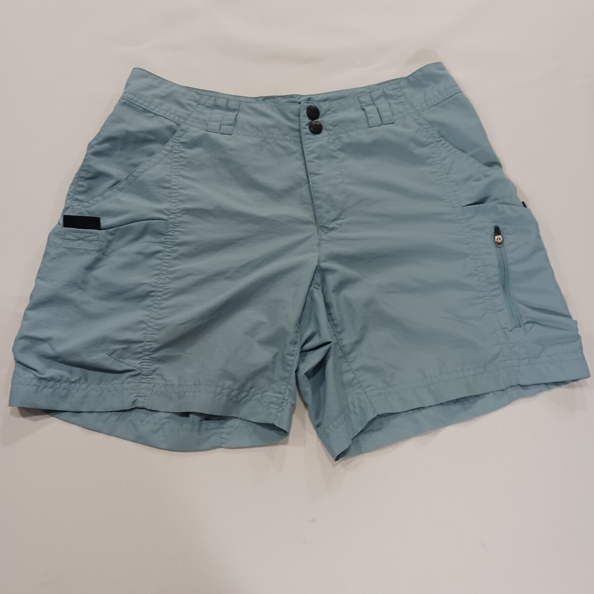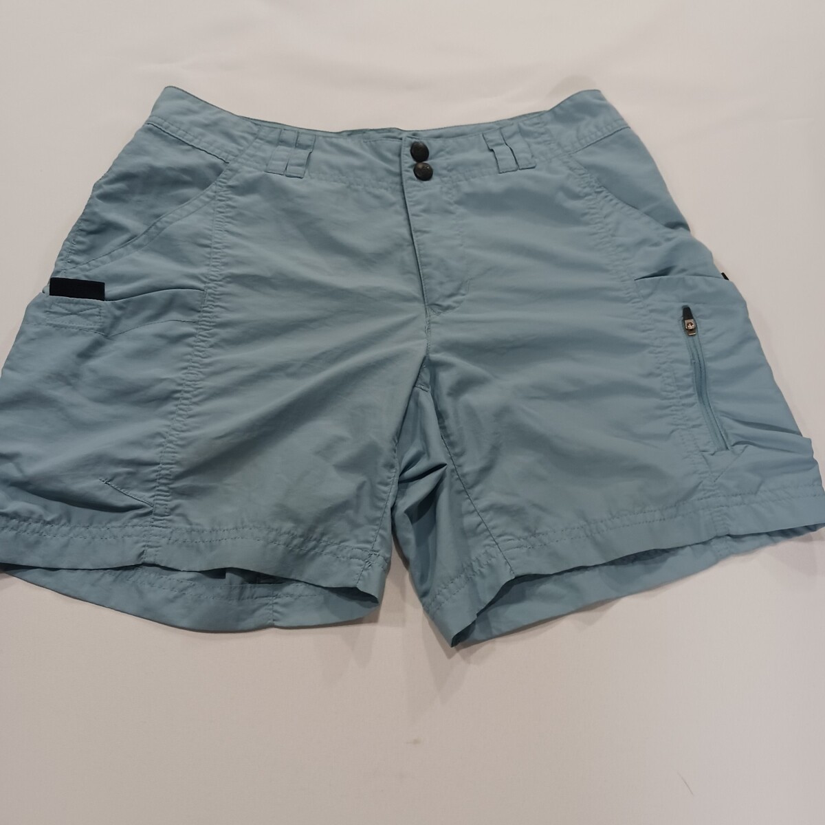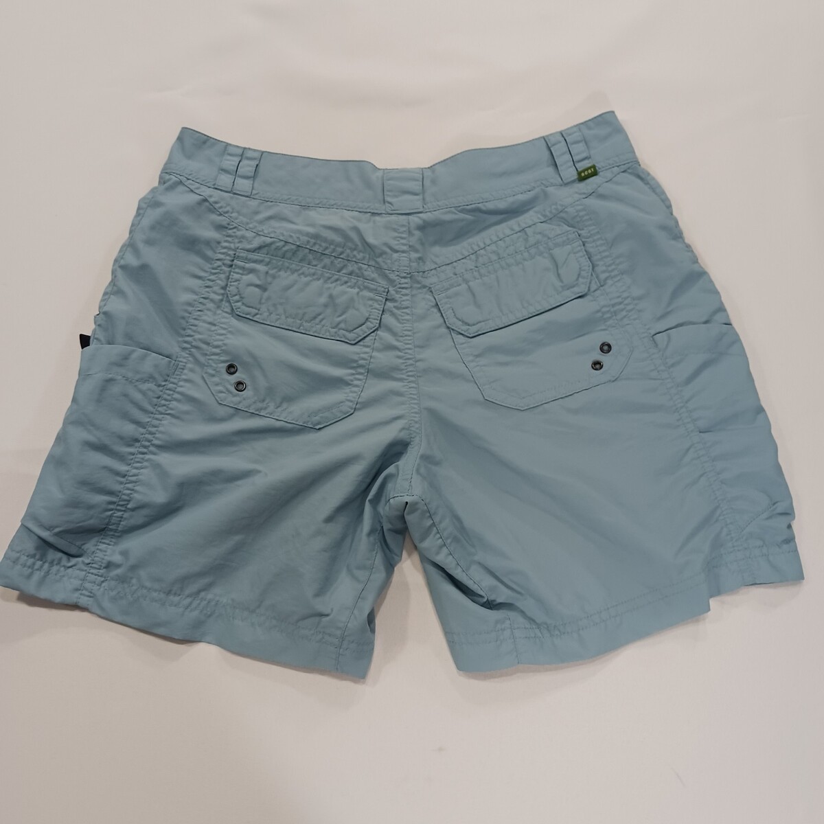 These REI UPF 50+ Women's Blue Flat Front Cotton Shorts in size 4 offer a stylish and functional option for outdoor activities. With a loose fit and a 6.5-inch inseam, these shorts provide both comfort and coverage. Made of nylon with UPF 50+ protection, they are perfect for summer, fall, and spring adventures. The solid blue color and cargo style with pockets add both practicality and a flattering touch to the garment. Easy to care for with machine washable instructions, these shorts are a versatile addition to any woman's activewear collection.