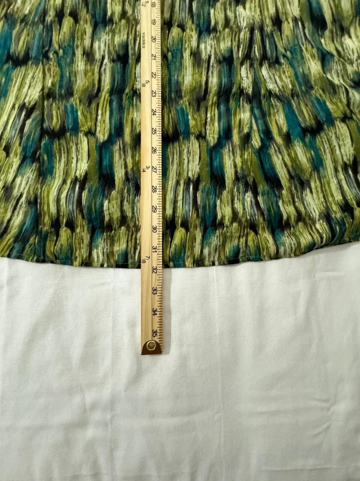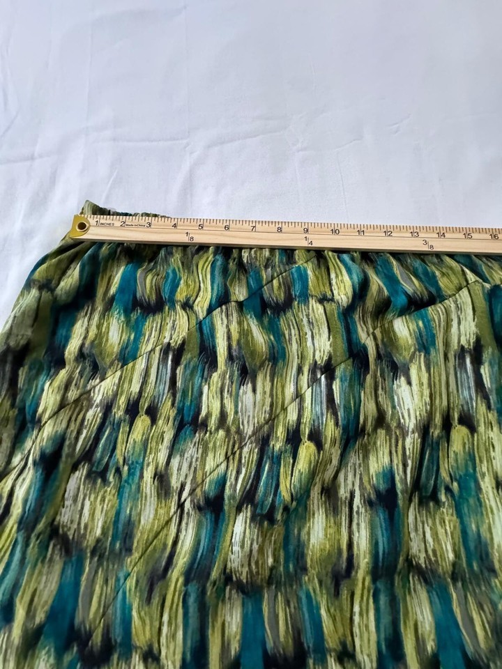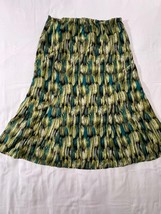 This is a Requirements women's skirt in size Large, with a colorful multicolor design made of polyester material. The skirt features an elastic waist and a ruffled hem, with a pull-on style and a side zip for easy wearing. Measuring 32 inches in length, this skirt is designed for a regular fit and showcases a vibrant and colorful theme. Ideal for women looking for a comfortable and stylish addition to their wardrobe.