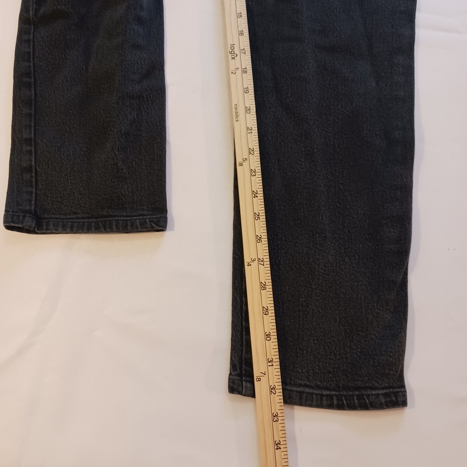 Elevate your wardrobe with these stylish black high rise denim jeans from Riders. Designed for women, these straight leg jeans are made with a blend of polyester, spandex, and cotton, making them comfortable to wear all day long. The 14L size, with a waist size of 30 inches and inseam of 32.5 inches, provides a flattering fit for any body type.