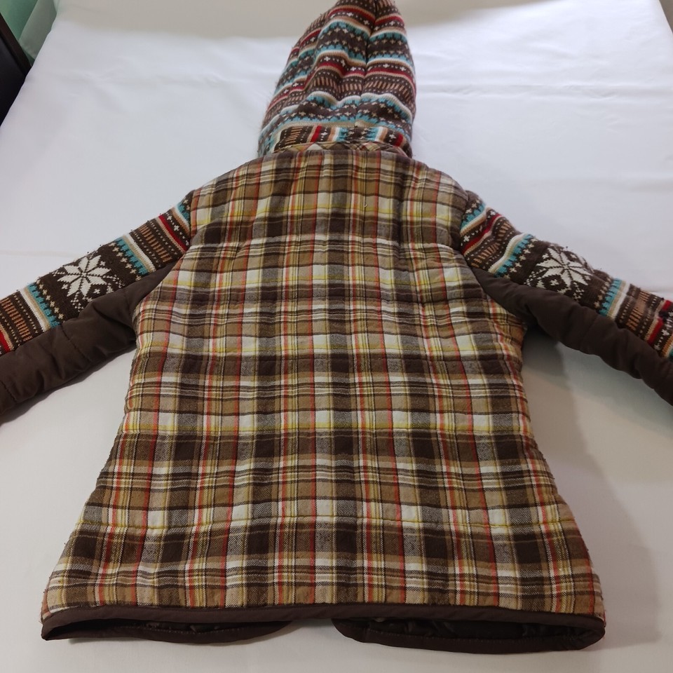 • Rue 21 Women's Brown Multicolor Geometric Removable Hoodie Snap Button Jacket M image 14