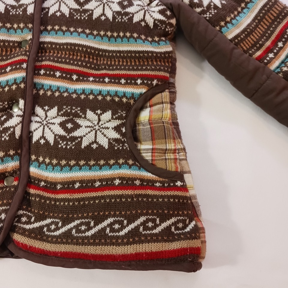 • Rue 21 Women's Brown Multicolor Geometric Removable Hoodie Snap Button Jacket M image 6