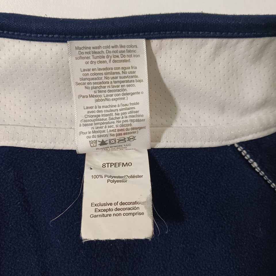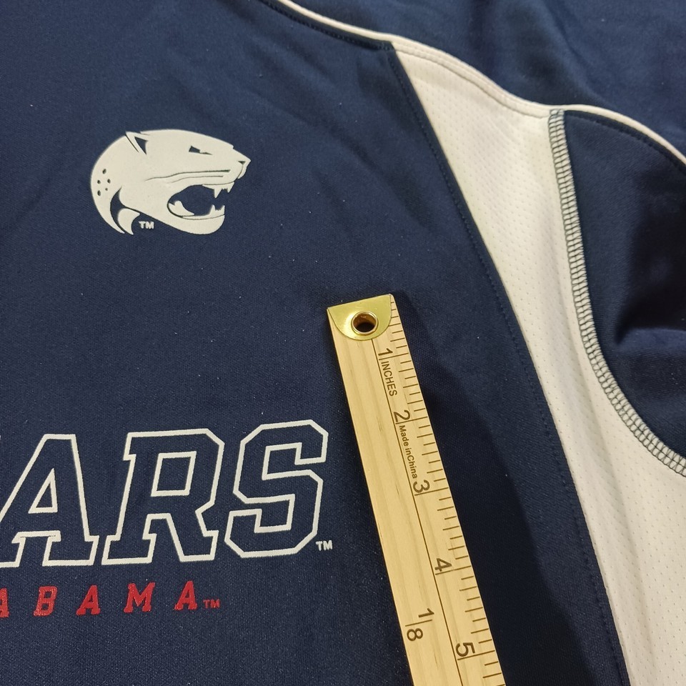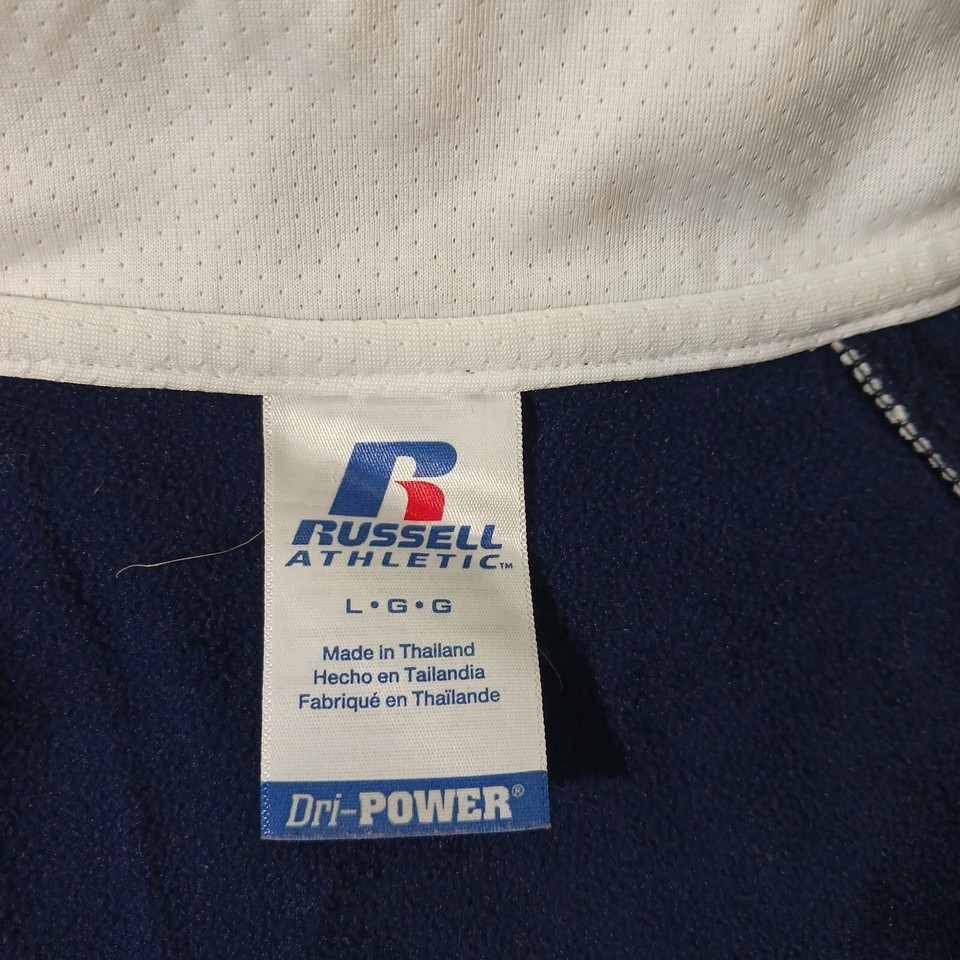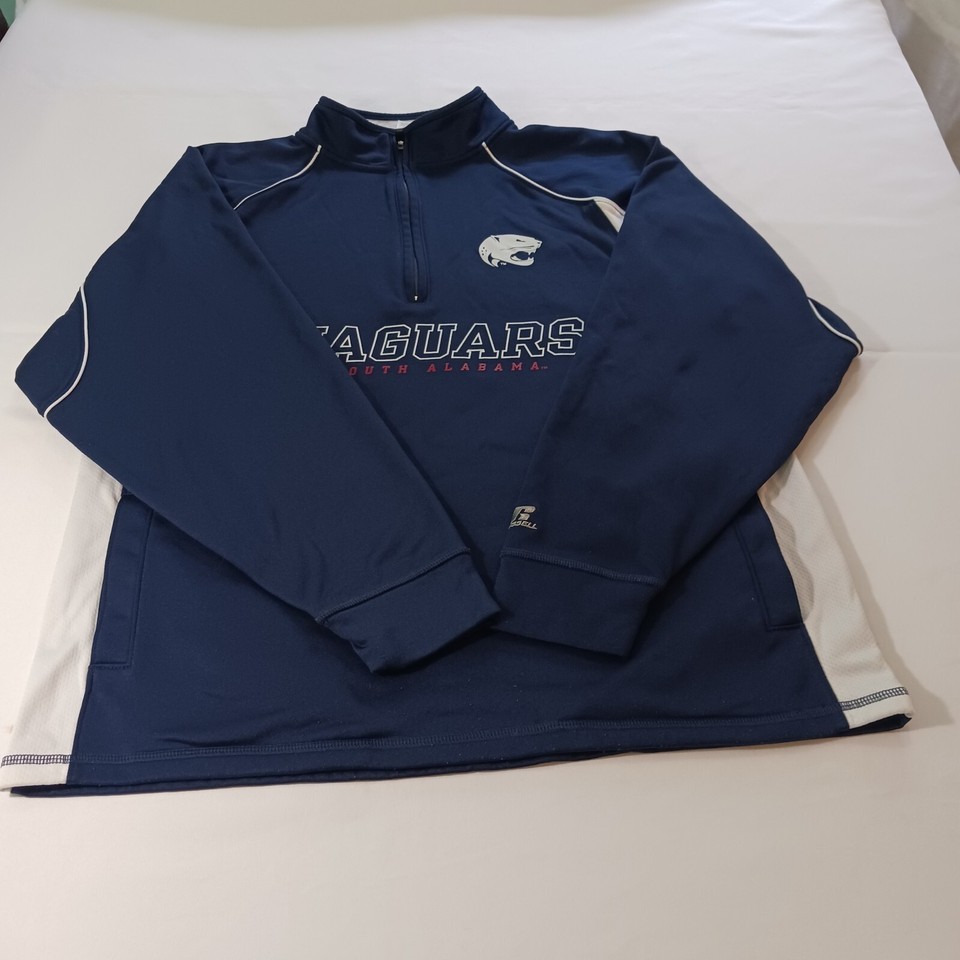 Show off your team spirit with this Russell Athletic Dri-Power South Alabama Jaguars sweatshirt. The blue and white design is perfect for any football fan, and the L size ensures a comfortable fit for men. Made in Thailand, this sweatshirt is a great addition to any collection of fan apparel and souvenirs. Whether you're heading to the game or just running errands, this sweatshirt is sure to make you stand out as a South Alabama Jaguars fan.