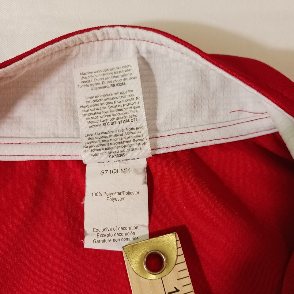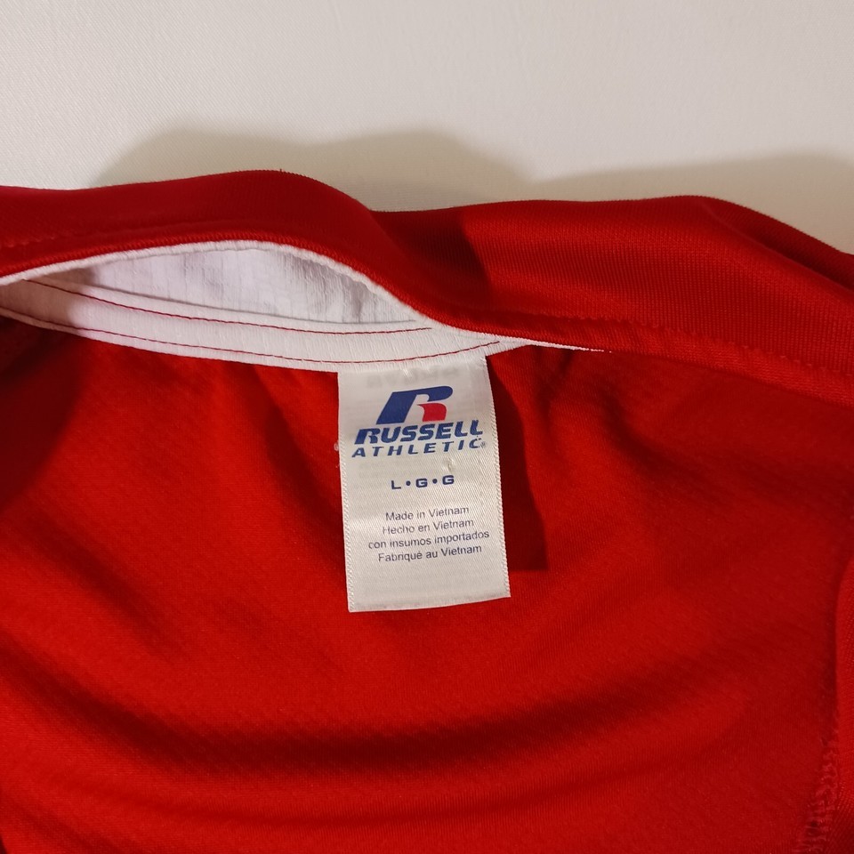 The red and white color combination is classic and versatile, making it easy to pair with any outfit. This sweatshirt is available in size L and is perfect for regular-sized men. Whether you're heading out for a morning run or just running errands, this Russell Athletic sweatshirt is the perfect choice.