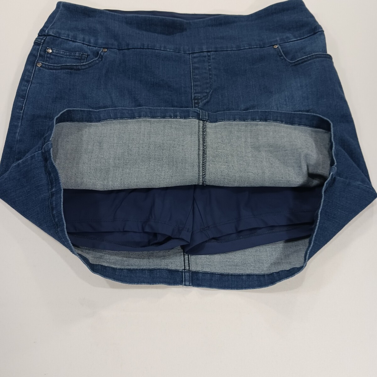 • S.C. & Co. Denim Skort Women’s Blue Pull-On Stretch Mini Skirt Size Large image 4