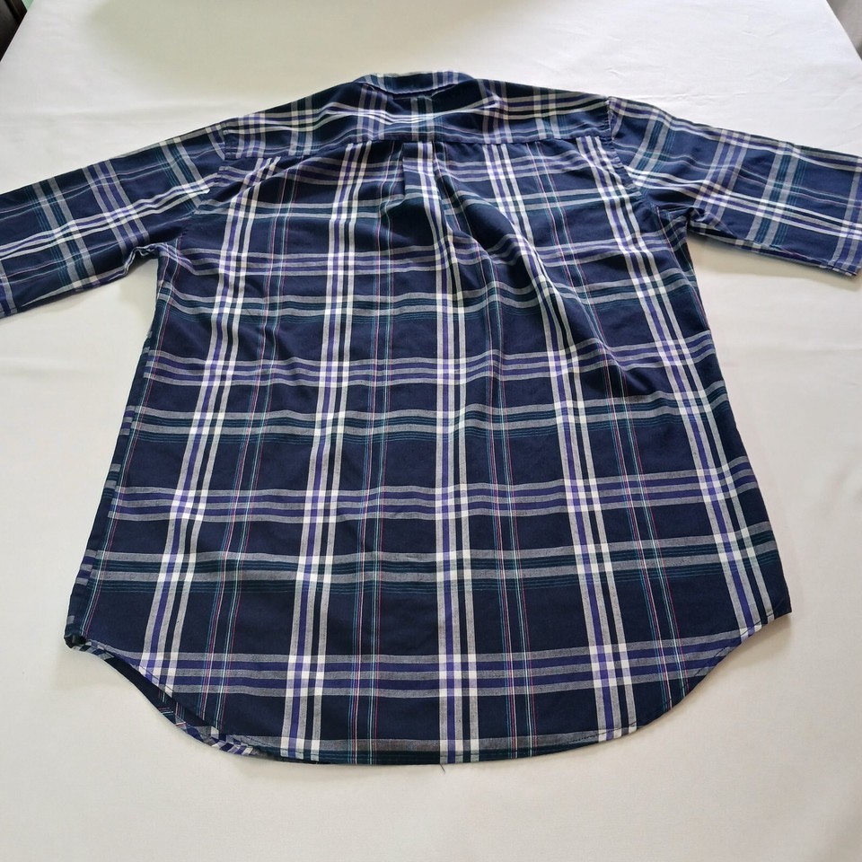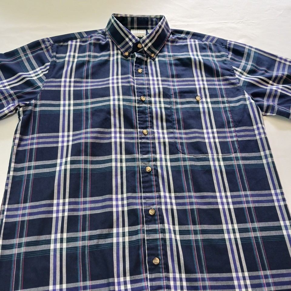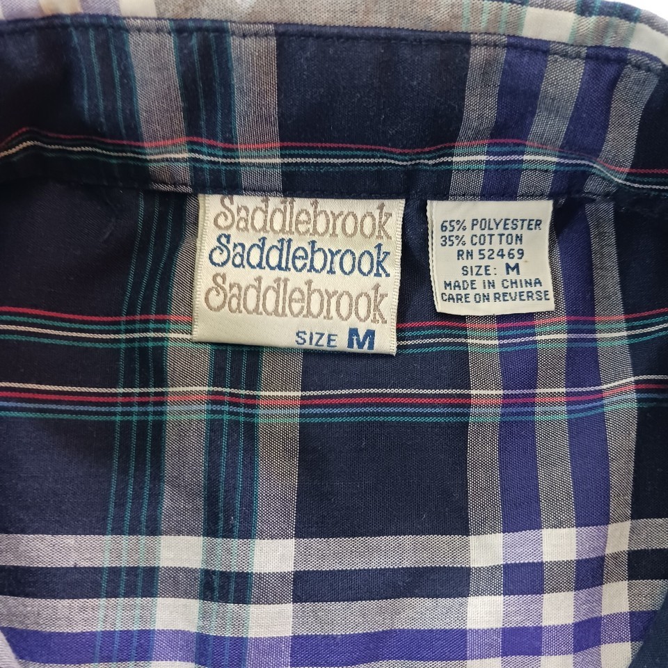Upgrade your casual style with this Saddlebrook button-down collar shirt for men. The blue and white plaid pattern adds a colorful touch to your wardrobe, making it perfect for the fall season. The short sleeves and classic fit provide comfort and style, ideal for any occasion. This button-up shirt is machine washable and made with a blend of polyester and cotton fabric, ensuring easy maintenance and durability. The collar style is button-down, and the closure is secured with buttons for a sleek finish. The shirt is available in size L and regular size type, suitable for men. Order this shirt and step up your fashion game.