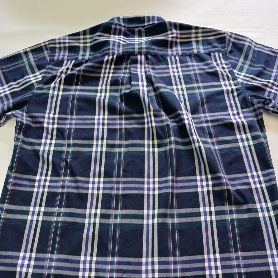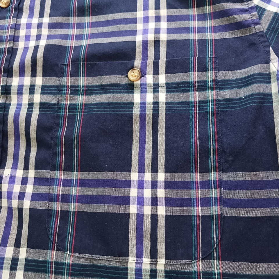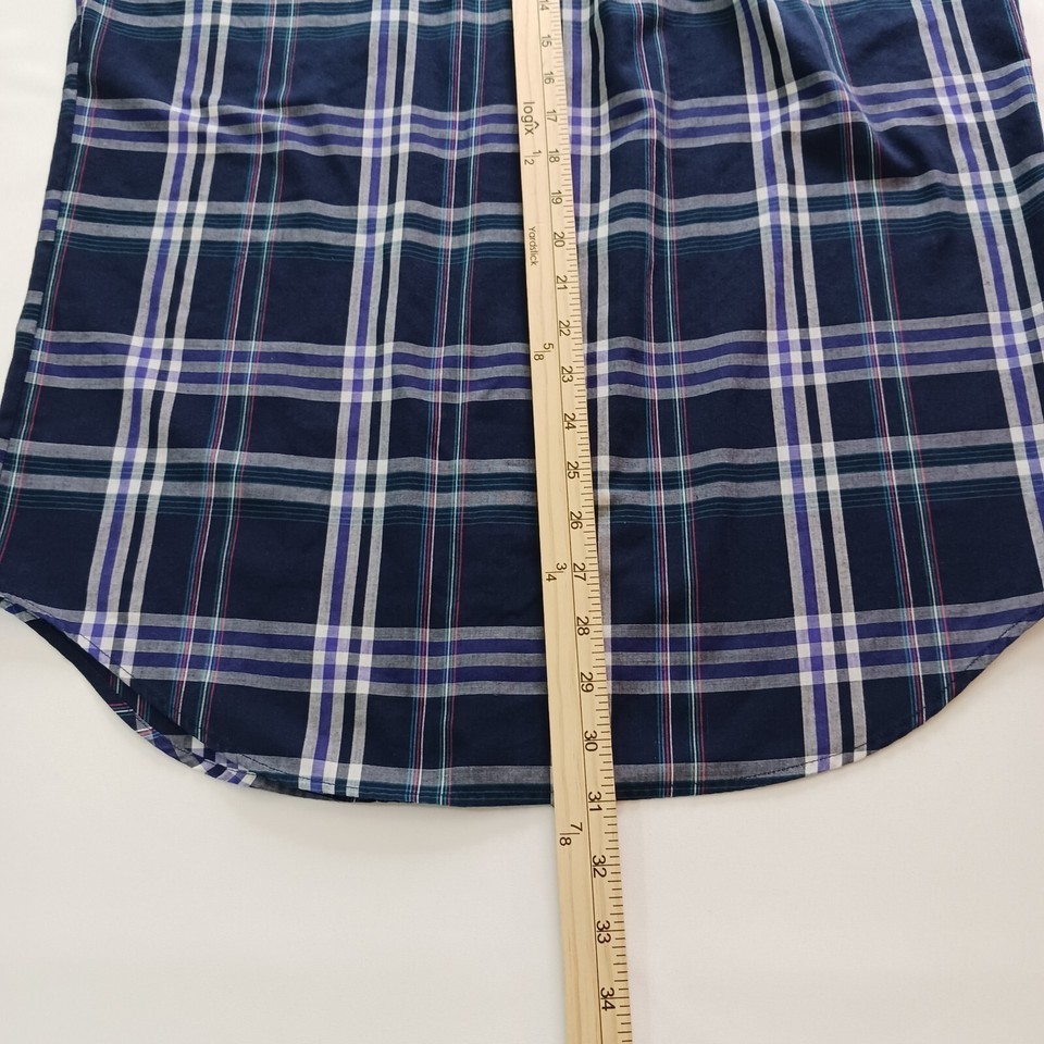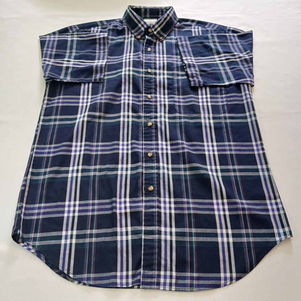 Upgrade your casual style with this Saddlebrook button-down collar shirt for men. The blue and white plaid pattern adds a colorful touch to your wardrobe, making it perfect for the fall season. The short sleeves and classic fit provide comfort and style, ideal for any occasion. This button-up shirt is machine washable and made with a blend of polyester and cotton fabric, ensuring easy maintenance and durability. The collar style is button-down, and the closure is secured with buttons for a sleek finish. The shirt is available in size L and regular size type, suitable for men. Order this shirt and step up your fashion game.