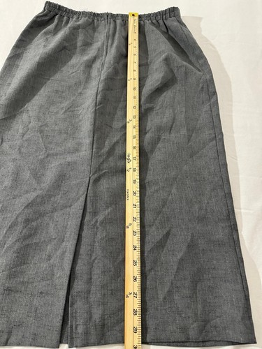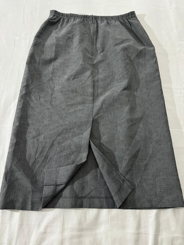 This Sag Harbor Petite Women's Pencil Skirt is a classic and versatile piece for various occasions. The skirt features a solid gray color, a straight & pencil style with a 30-inch length, and an elastic waist for comfort. It has a rear zip closure and a slit detail for a touch of sophistication. Made of polyester, this skirt is designed in a size 12P for petites, making it a perfect fit for a waist size of 29 inches. Whether for workwear, business, travel, or special events like weddings or parties, this skirt can elevate your outfit with its timeless design.