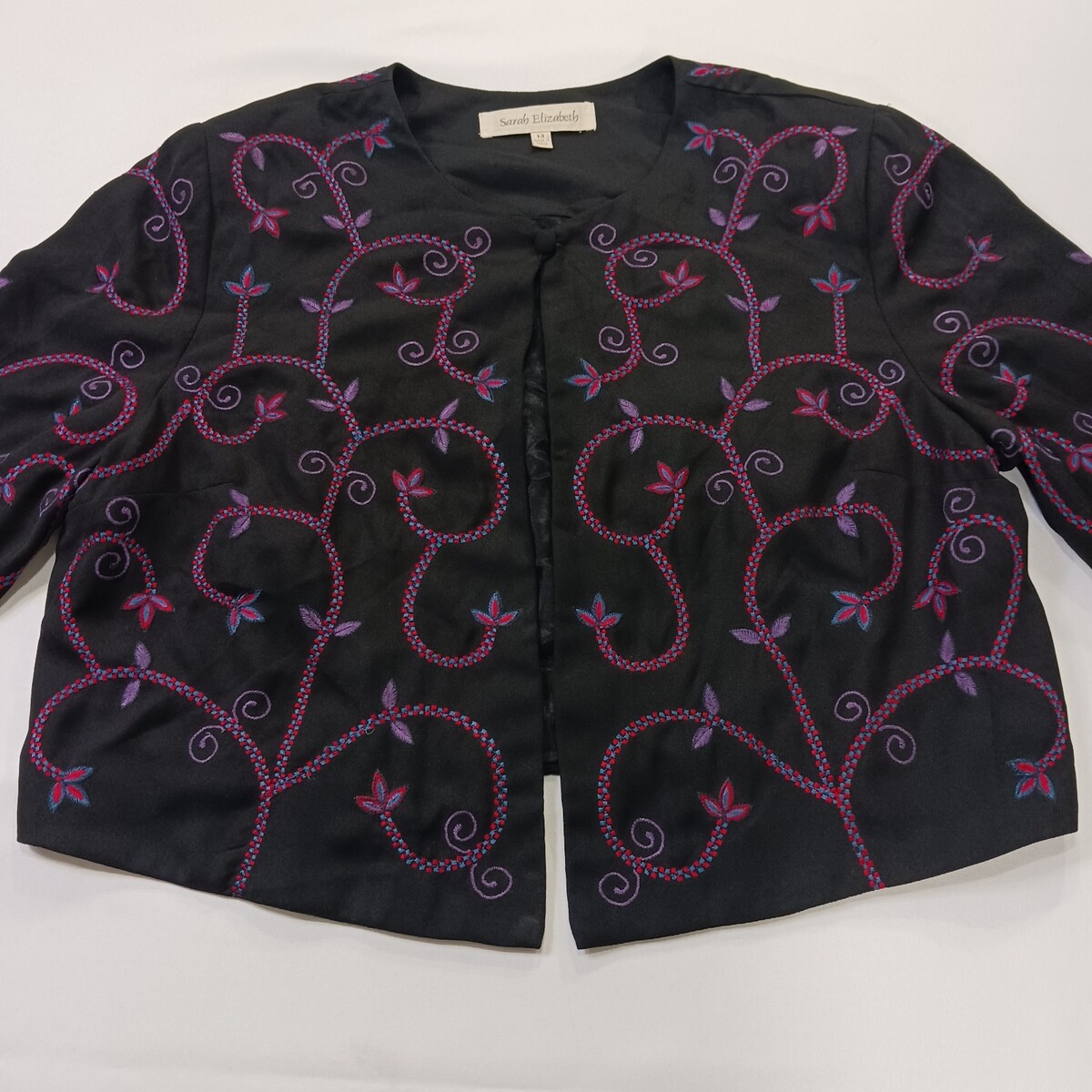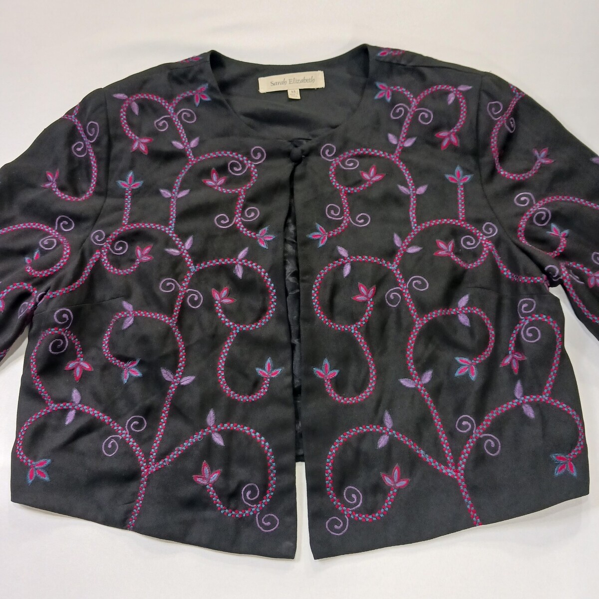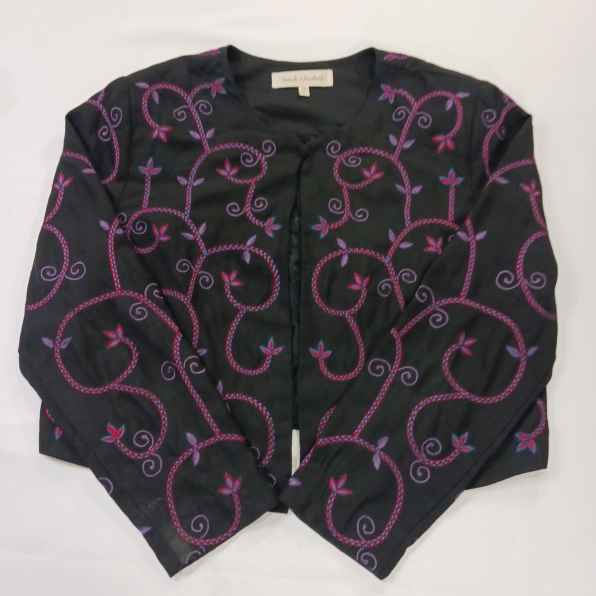 • Sarah Elizabeth Women's 14 Black/Red Floral Embroidered One Button Blazer Jacket image 10