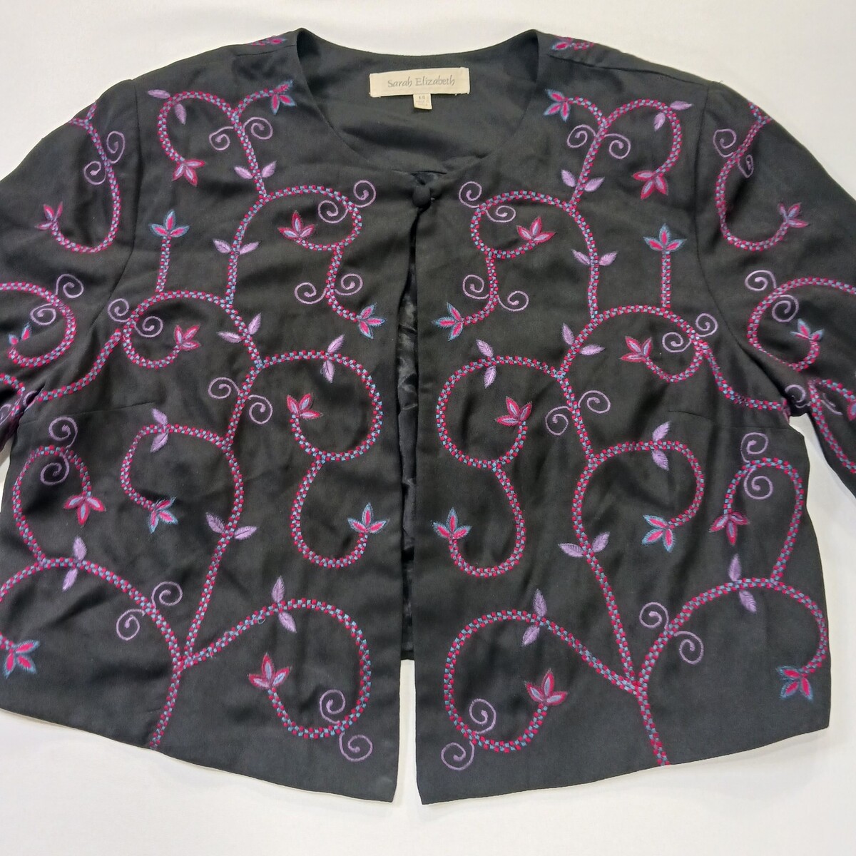 • Sarah Elizabeth Women's 14 Black/Red Floral Embroidered One Button Blazer Jacket image 14