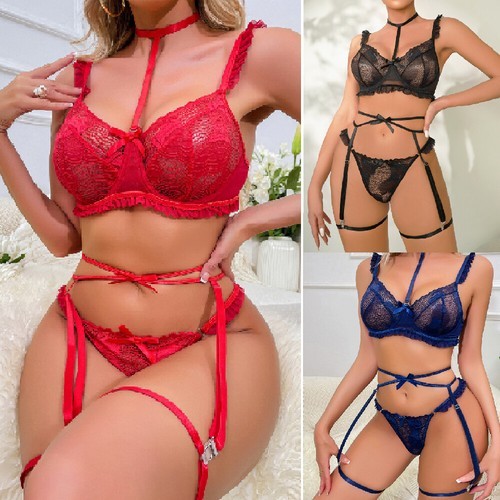 Elevate your confidence with this seductive green lace ensemble. The detailed lace patterns and strategic cutouts highlight your natural curves, while the soft material ensures comfort throughout the day or night. The bra and garter belt are designed with elegant bows and ties, adding a playful yet sophisticated element to your wardrobe. Ideal for special occasions or everyday wear.