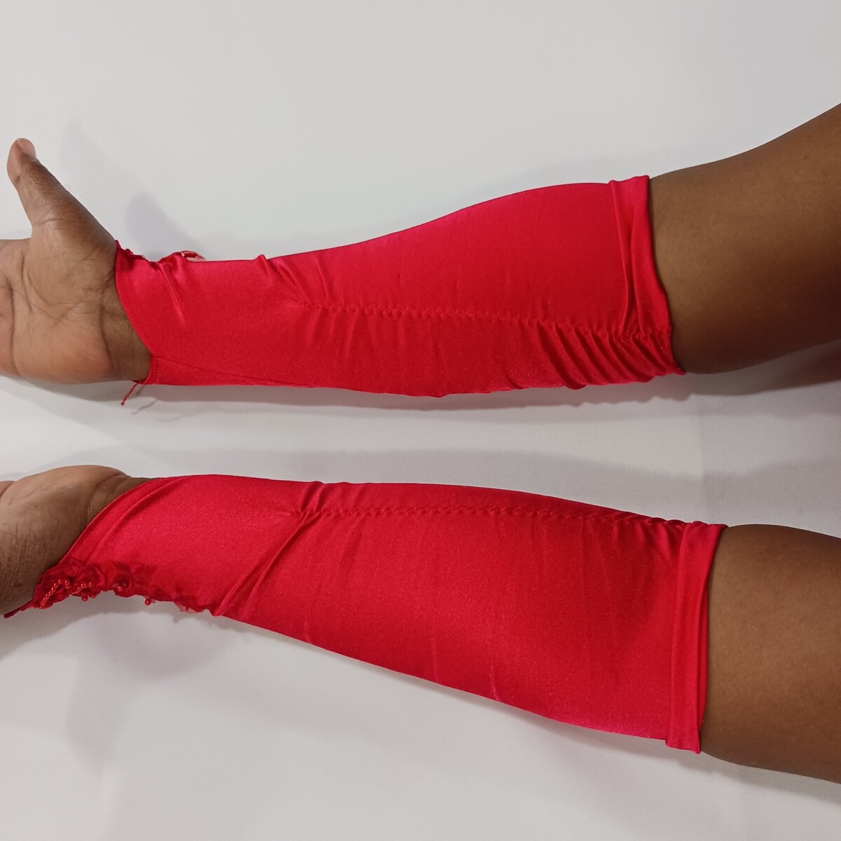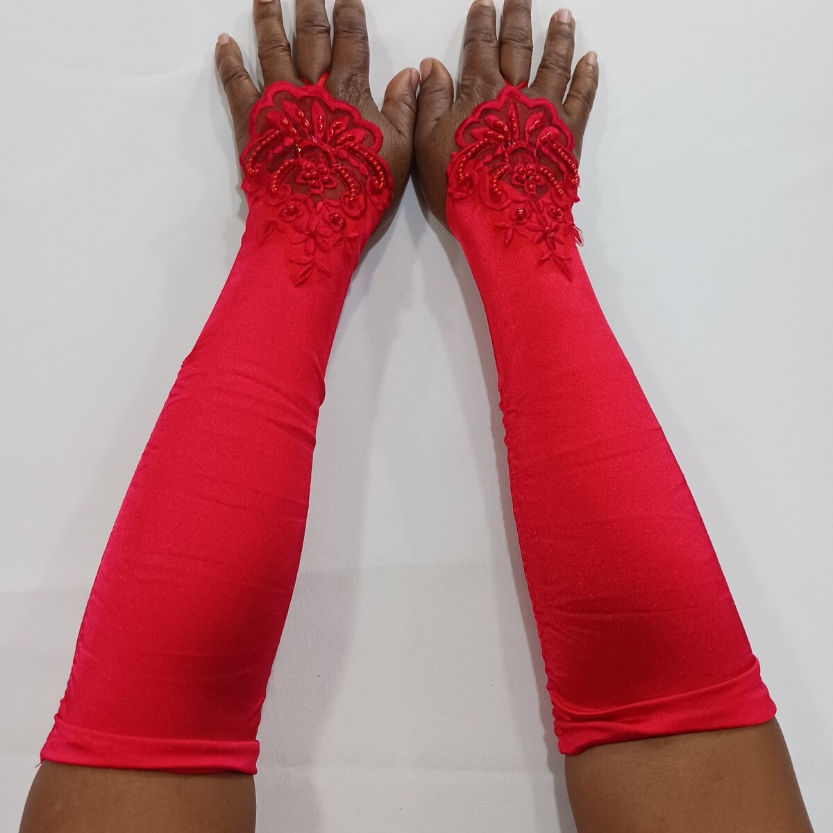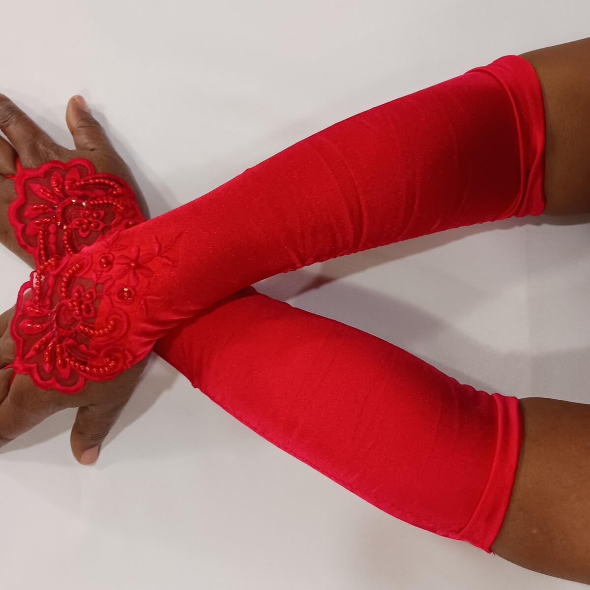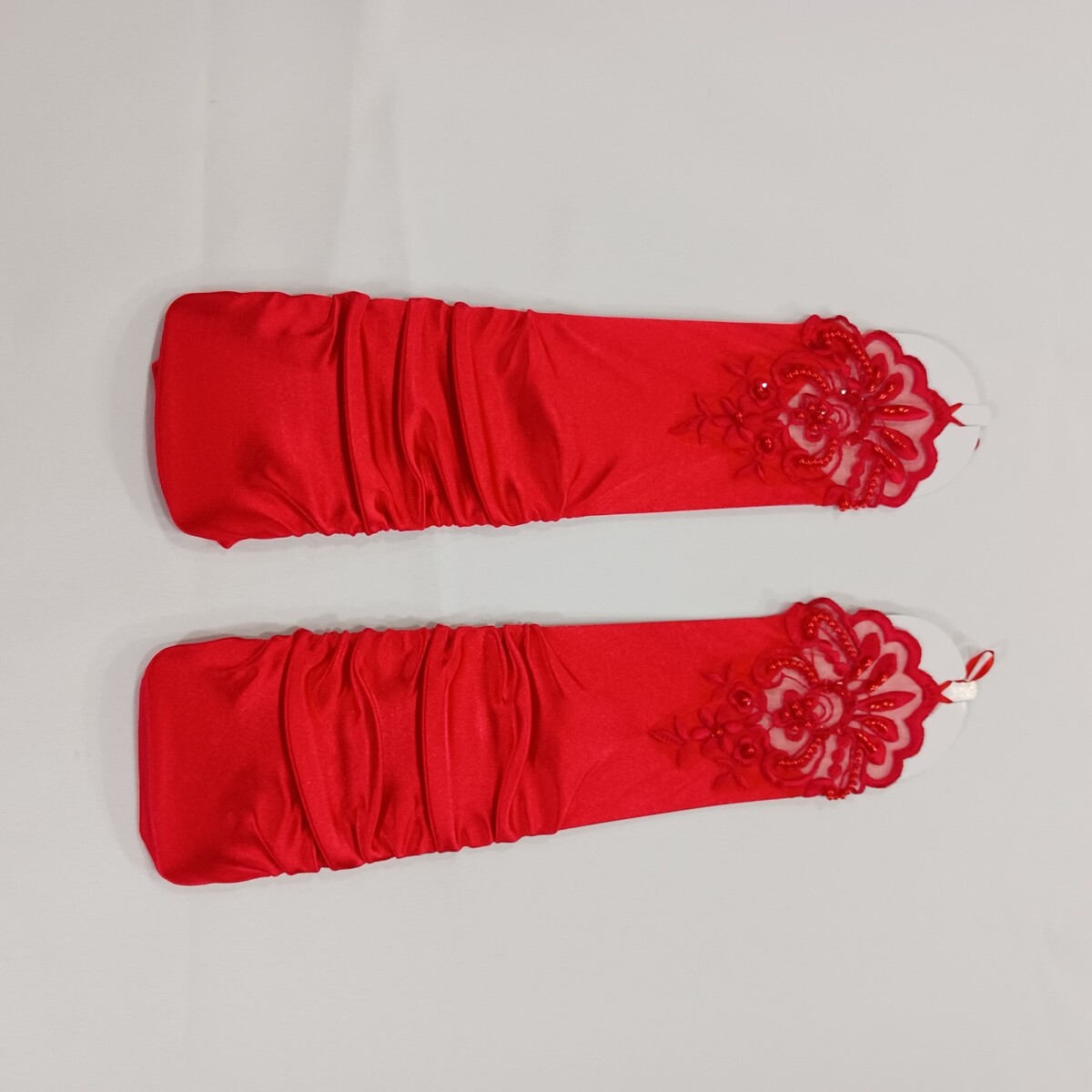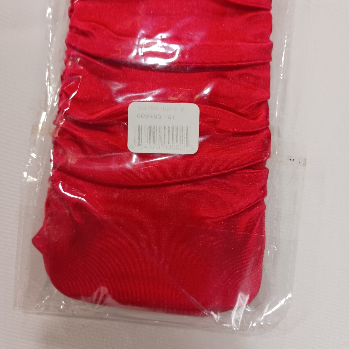These sexy women's nylon spandex blend fingerless stretch red gloves are a stylish accessory for various occasions such as weddings, parties, or casual outings. The one-size-fits-all design features a solid black color with a leather lining for added comfort. Made from a durable nylon material with a polyester insulation, these gloves are machine washable and suitable for all seasons, making them a versatile and fashionable choice for any woman.