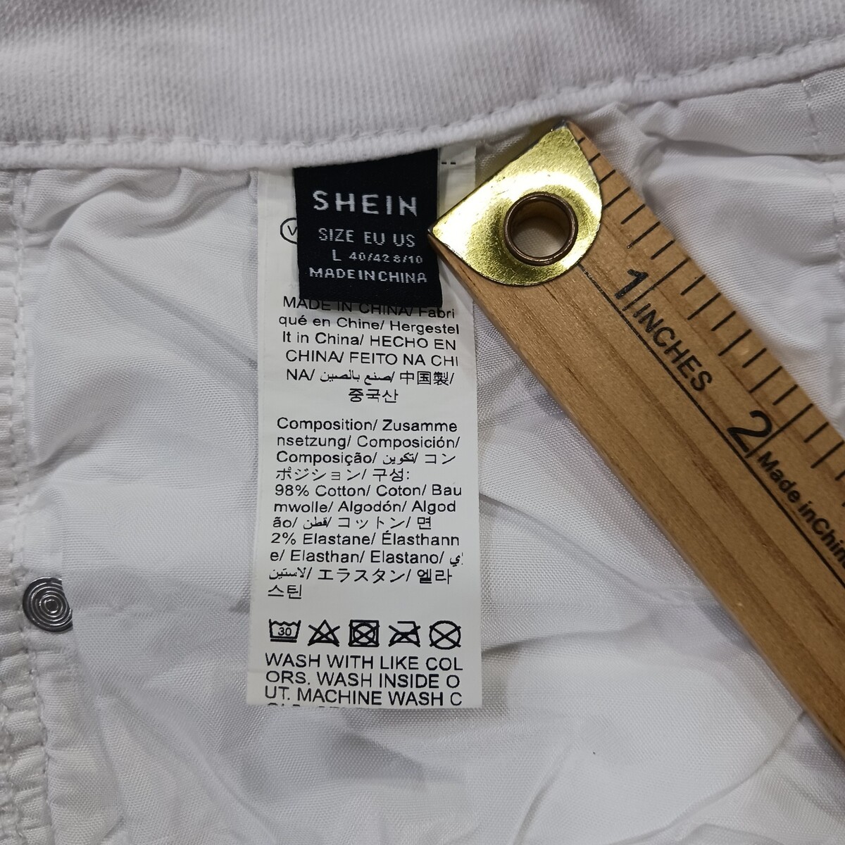 • Shein Women’s White Cotton Blend Frayed Denim Skirt Size Large  image 10