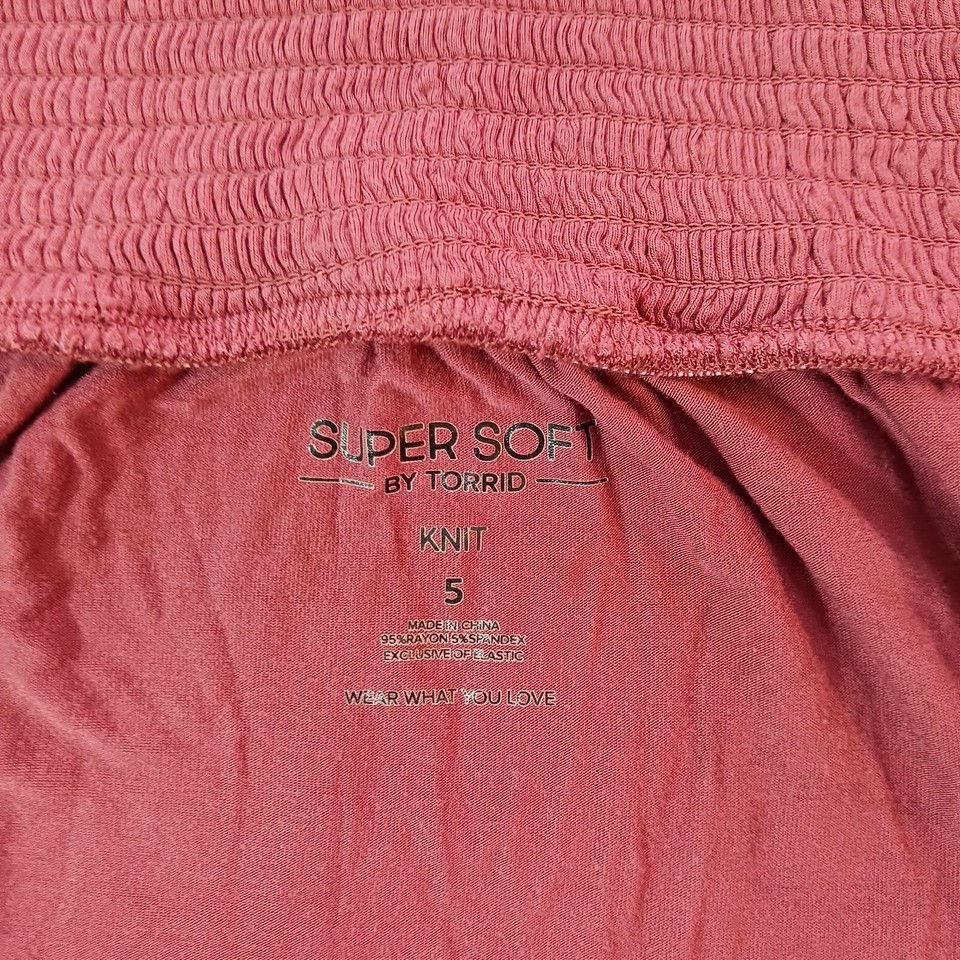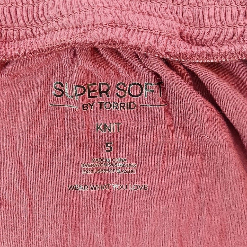 This is a stylish and comfortable pink circle bottom skirt designed by Sipersoft for Torrid in a size 5. It features a solid pattern with an elastic waist closure for easy wear. Made from a blend of spandex and rayon, this short skirt has a skater style and is machine washable for convenience. Perfect for plus-size women, this skirt is a versatile addition to any wardrobe, suitable for various occasions.