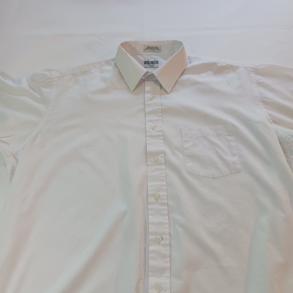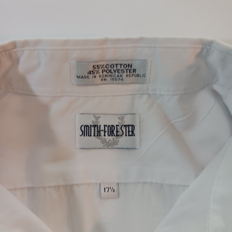 Enhance your wardrobe with this Smith Forester men's button-up shirt. Made from a comfortable cotton blend fabric, this shirt features a soft collar and long sleeves with button cuffs. The white color and solid pattern provide a modern touch to the classic style.