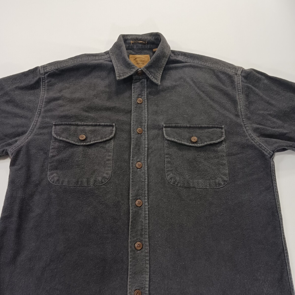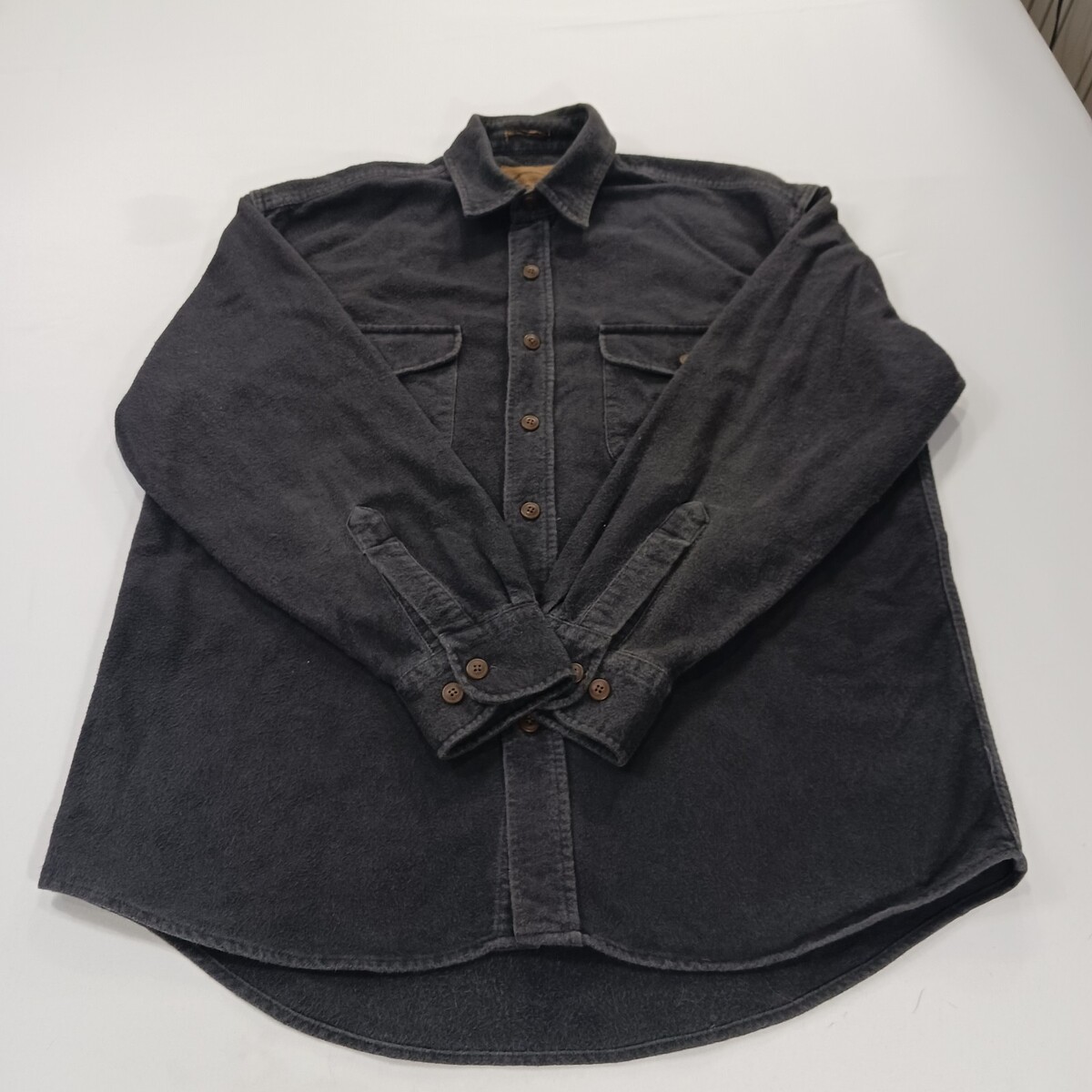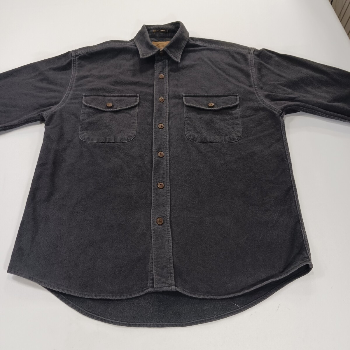 This St John's Bay Men's Black Heavyweight Long Sleeve Cotton Shirt in size Medium is a versatile and stylish addition to any man's wardrobe. Made of durable cotton with a solid black color, this shirt features a collared neckline, button closure, and convenient pockets. Perfect for casual occasions in any season, this button-up shirt is easy to care for with its machine washable material. The classic design and quality construction make it a timeless and practical choice for everyday wear.